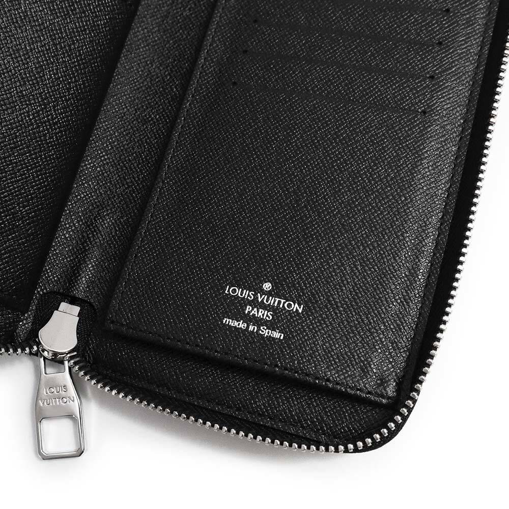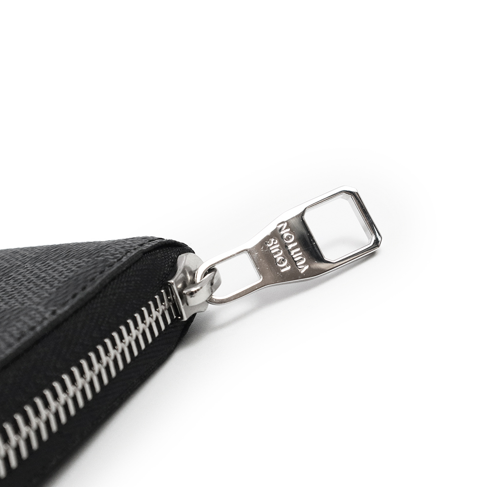 ダミエ・グラフィットの「ジッピー・ウォレット ヴェルティカル」。大きく見開くことの出来るファスナー開閉に加えて、カードポケットや小銭入れなど収納面も非常に充実してます。