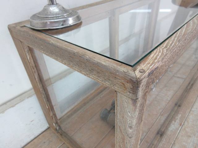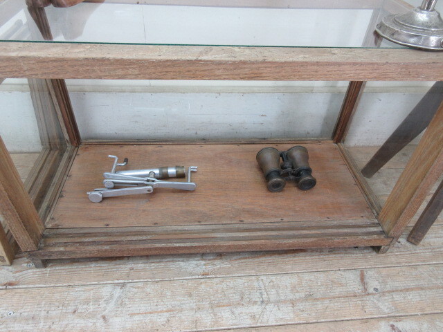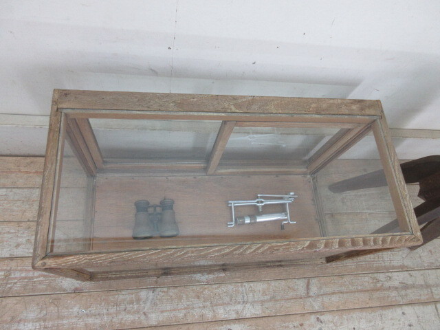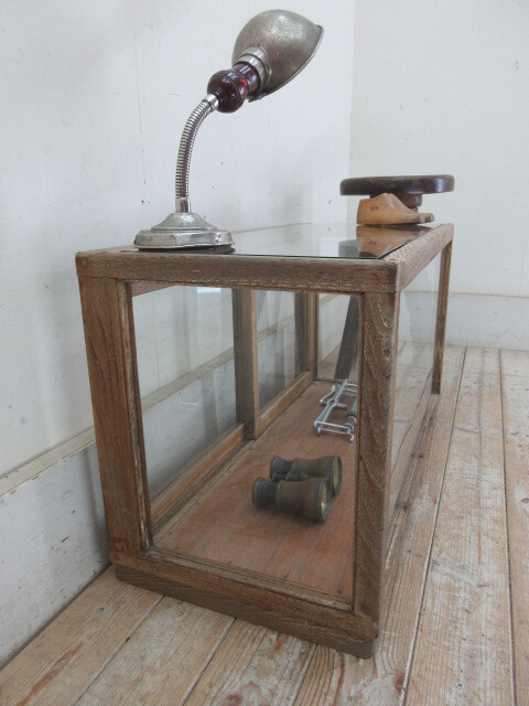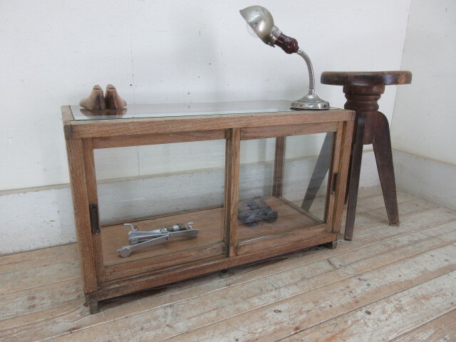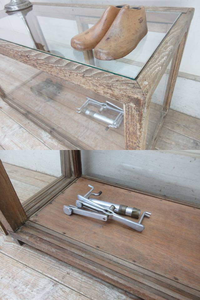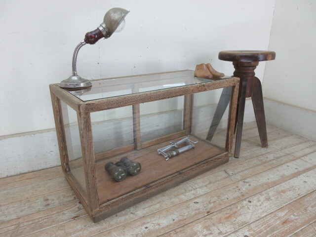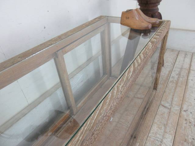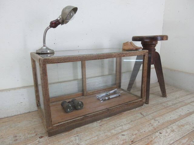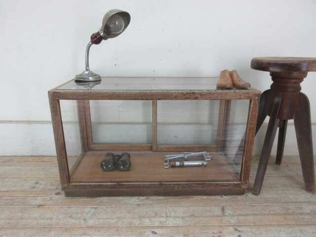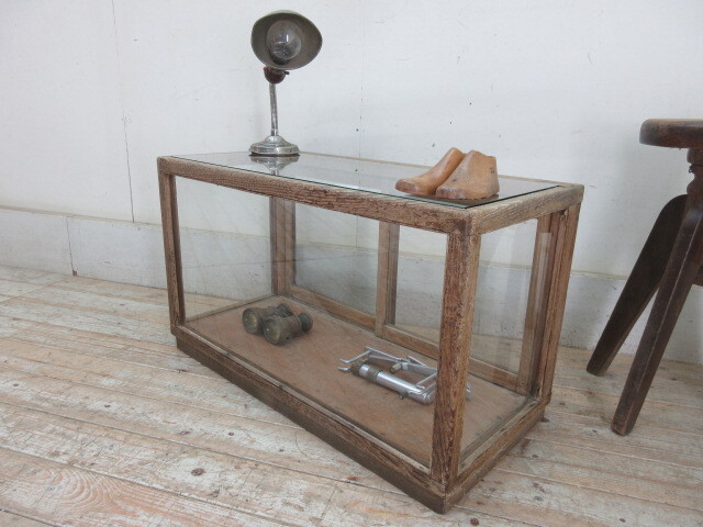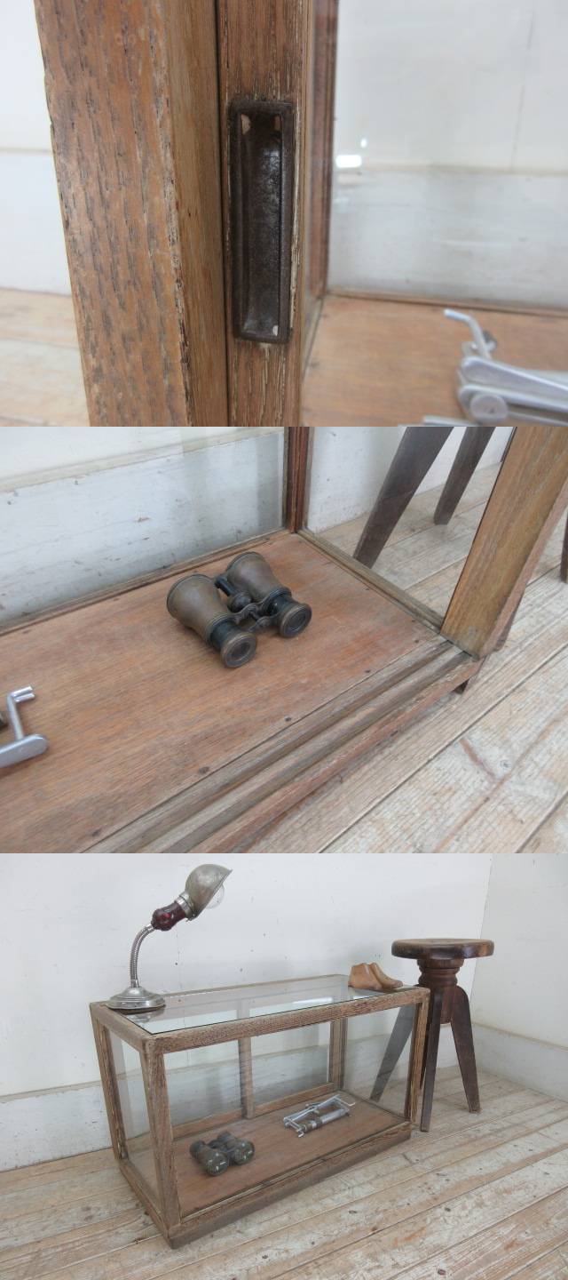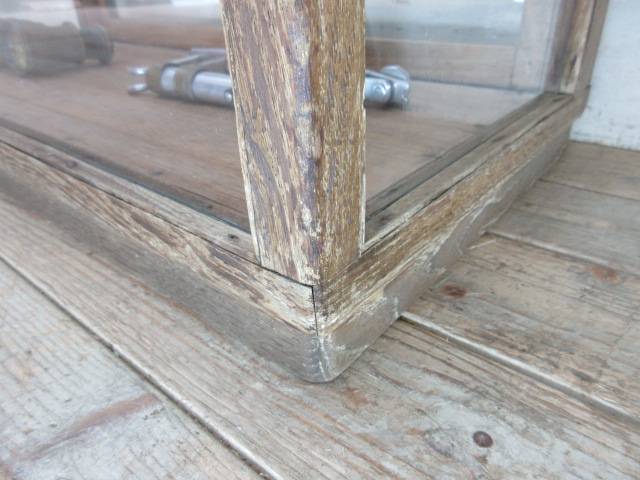 古い楢材の小さなガラスケースH118  アンティーク家具木枠パンケースカウンター陳列棚卓上ショーケース店舗什器カフェ什器無垢材古家具