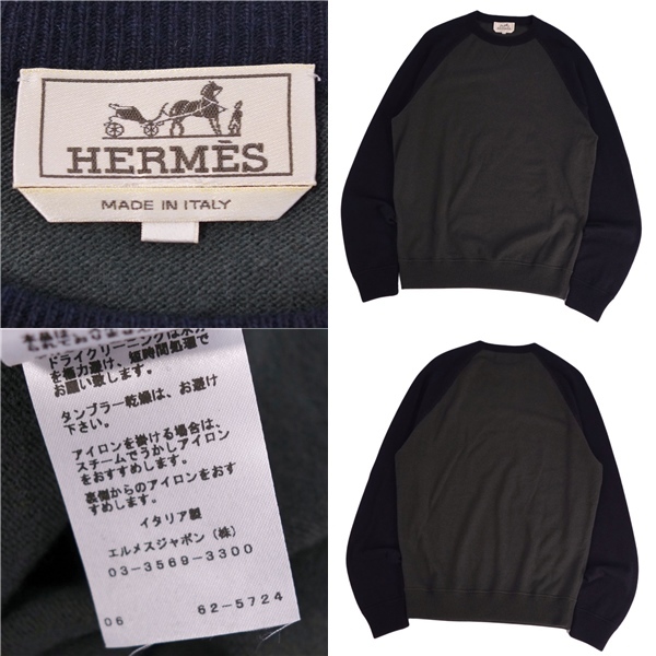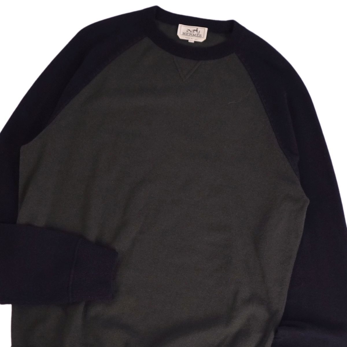 極美品 エルメス HERMES ニット セーター プルオーバー 長袖 ウール カシミヤ トップス メンズ XL カーキ/ネイビー |