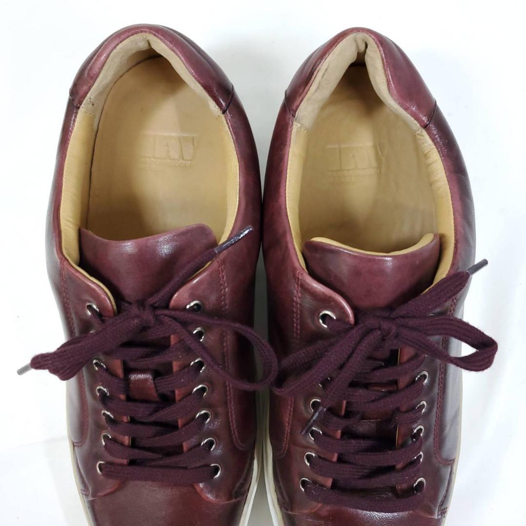 落ち着いたバーガンディカラーで、大人のカジュアルスタイルにぴったりの一足です。