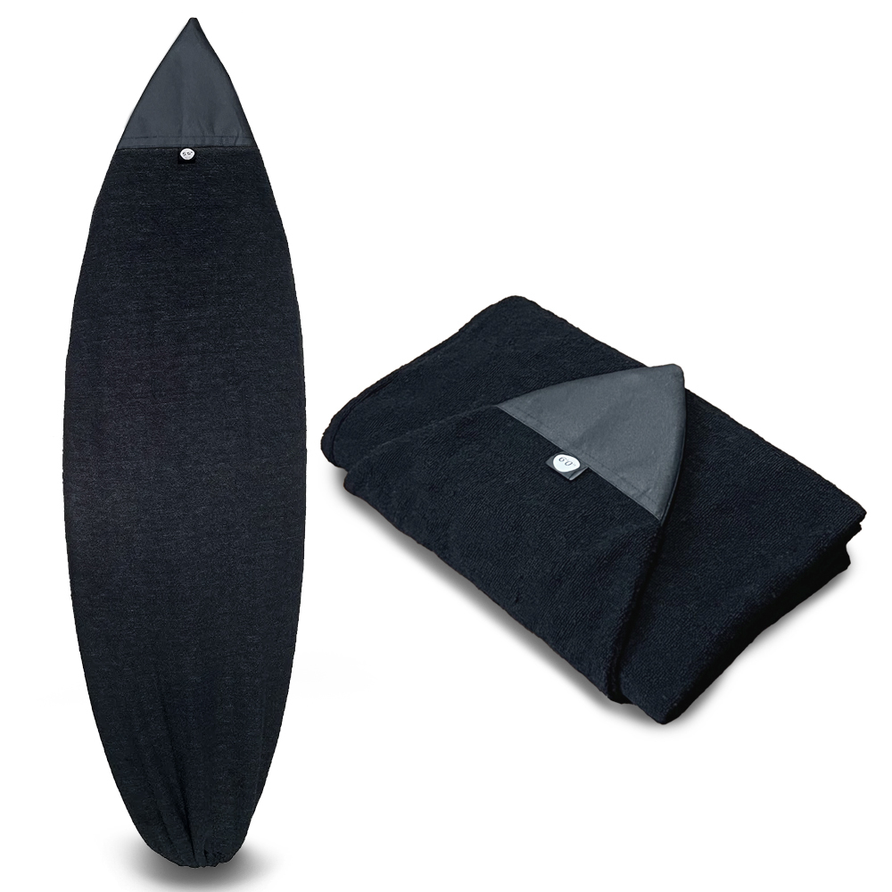 サーフボードニットケースショートボード用 6'0 ブラック黒タオル地パイル生地ソフトケースカバー 厚手伸縮ストレッチポリエステル素材