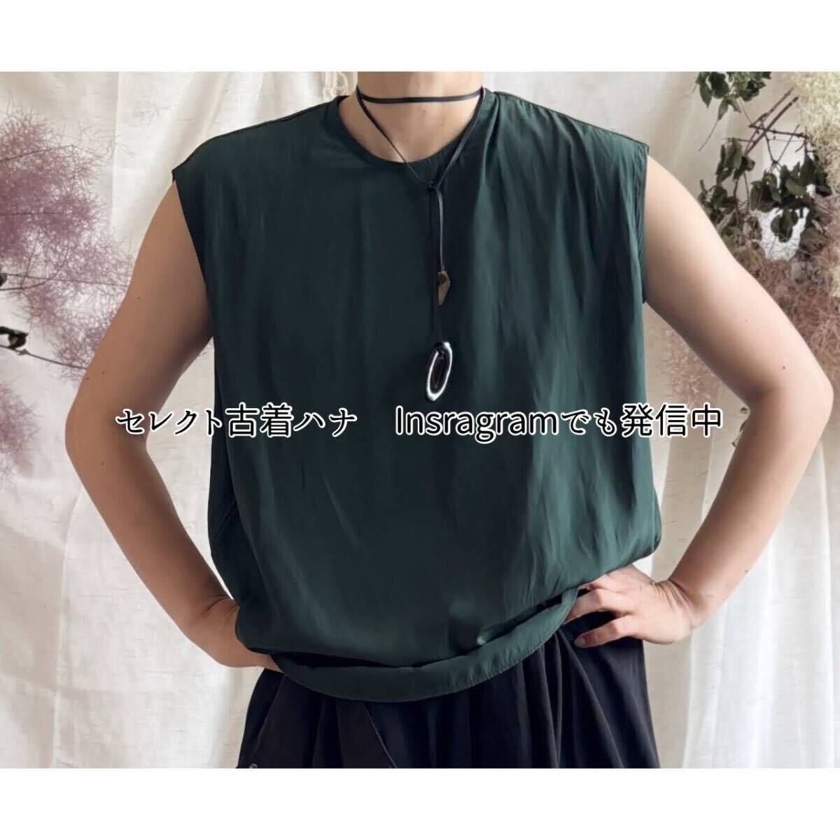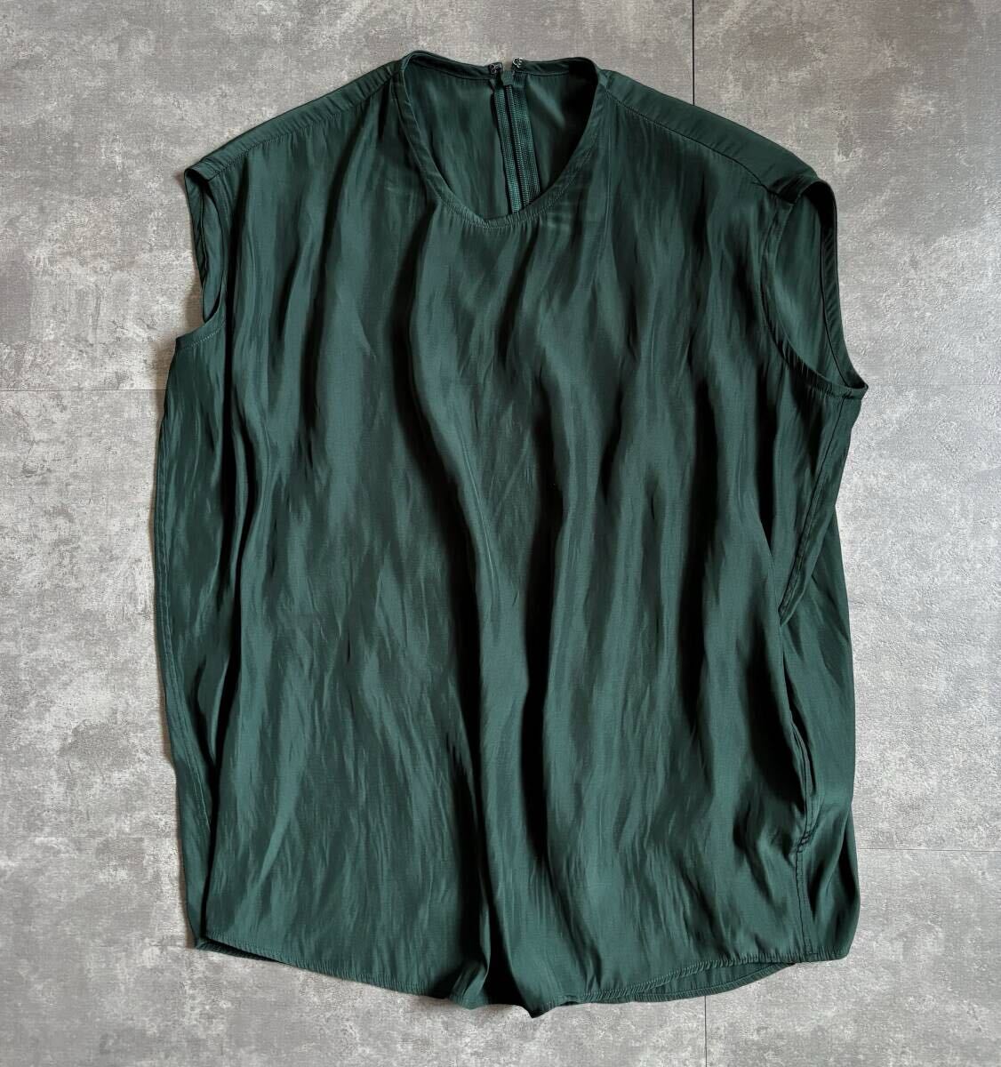 24239 ポリエステル ワッシャー ノースリーブ プルオーバーTシャツ カットソー Uネック グリーン