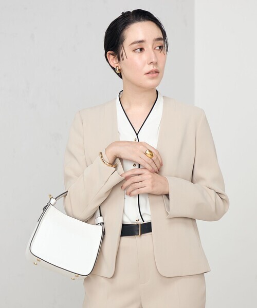 キーワード:ジャケット ノーカラージャケット レディース ショート丈 無地
