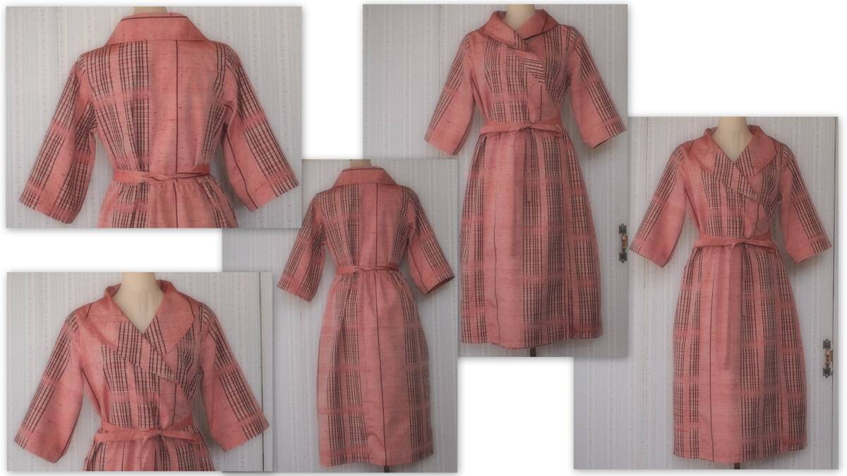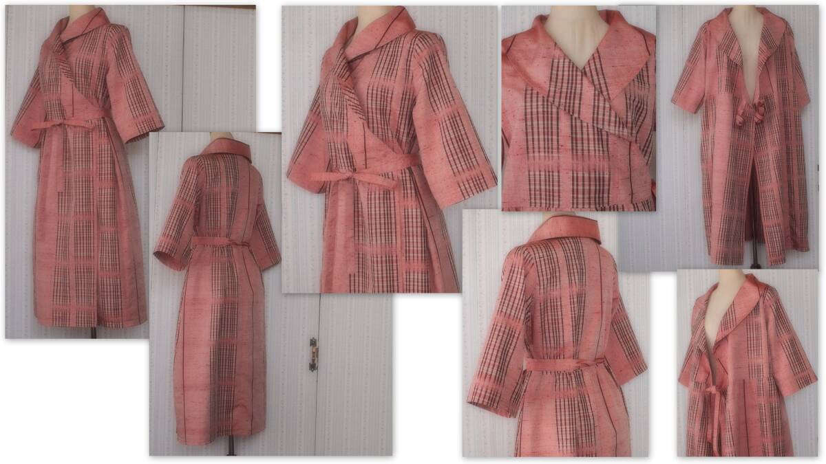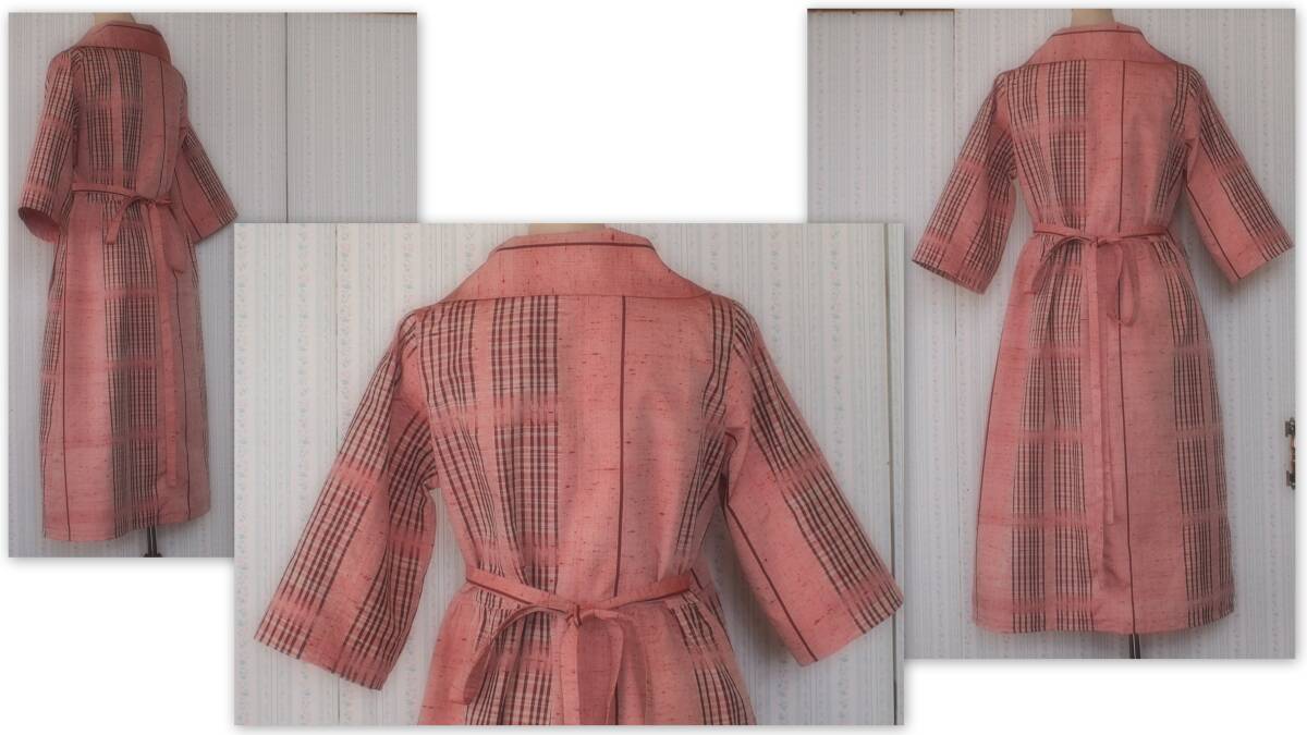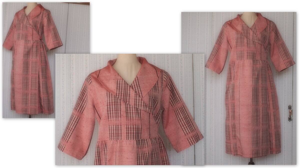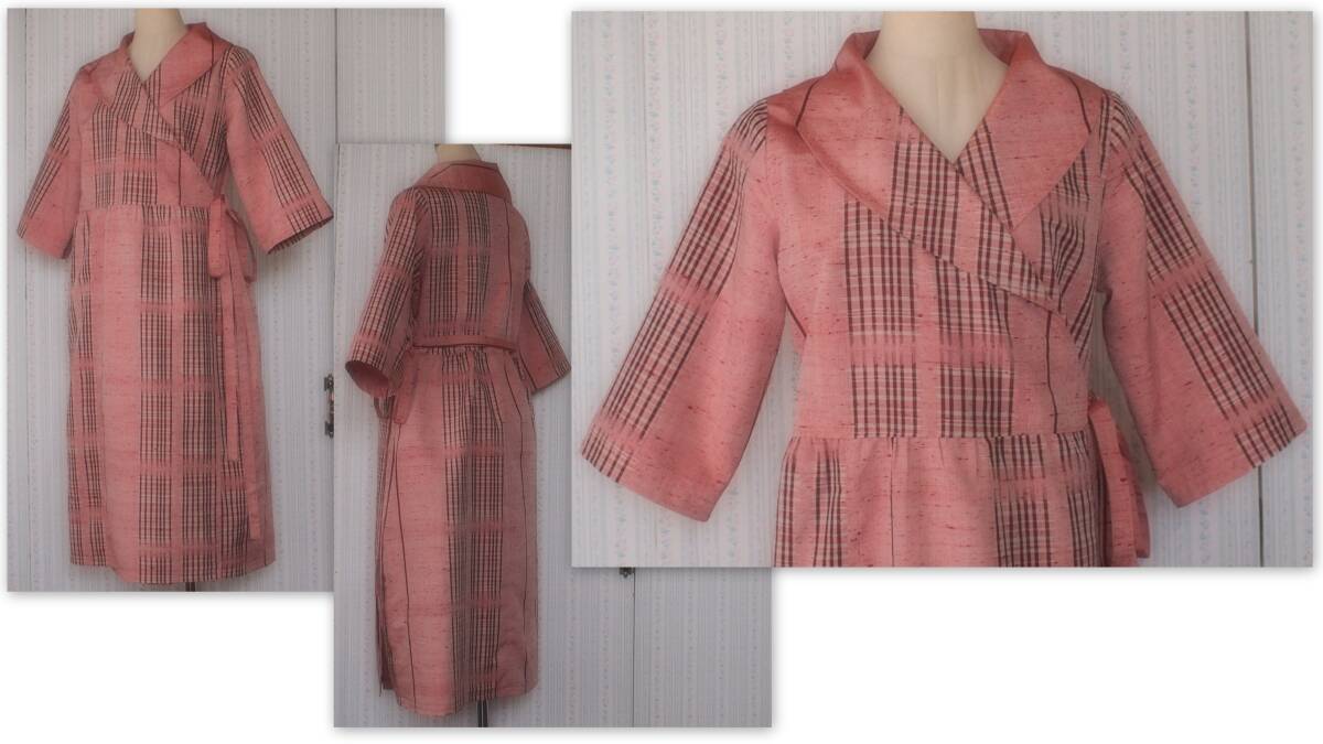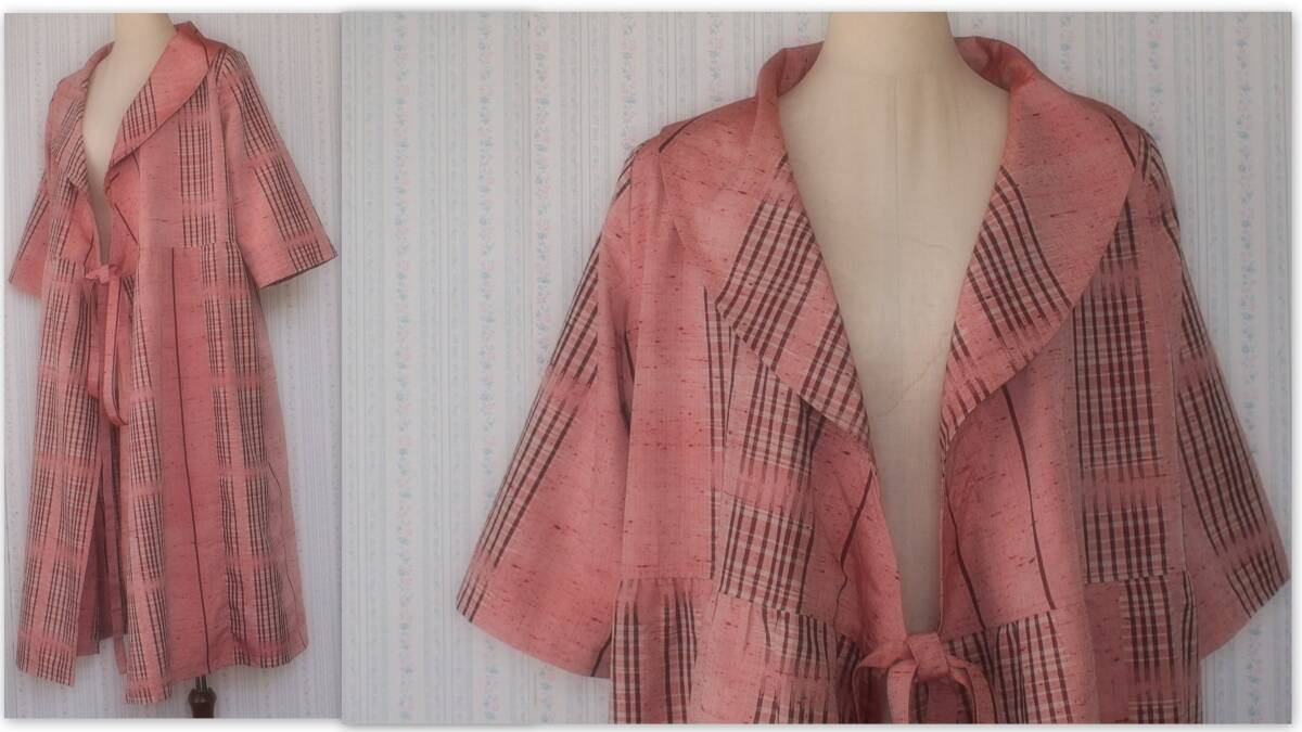 桃色★着丈110㎝★紬★ポケット付き カシュクール ワンピース★着物リメイク検索 アンサンブル ジャケット 羽織物 プルオーバー