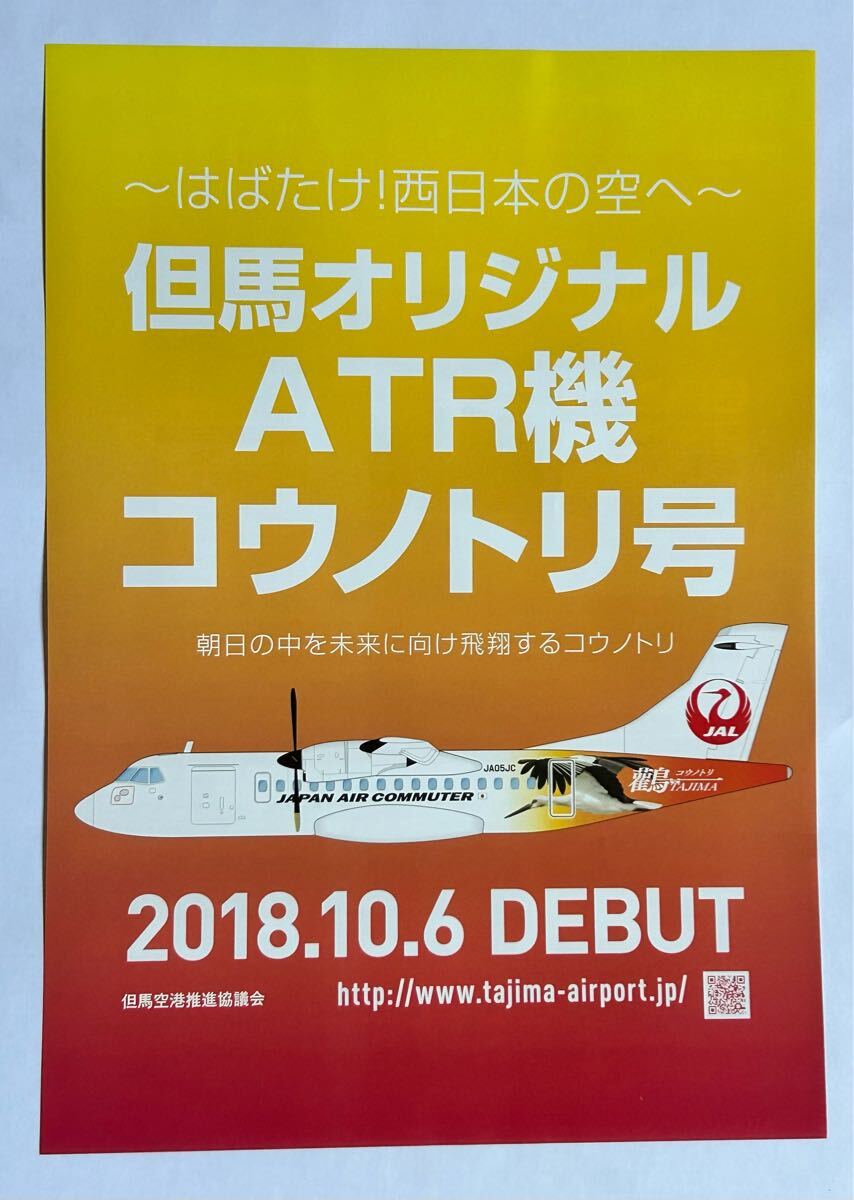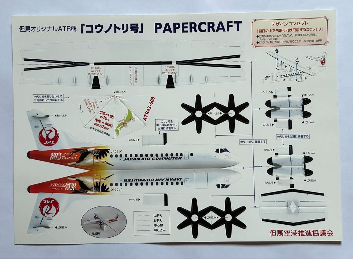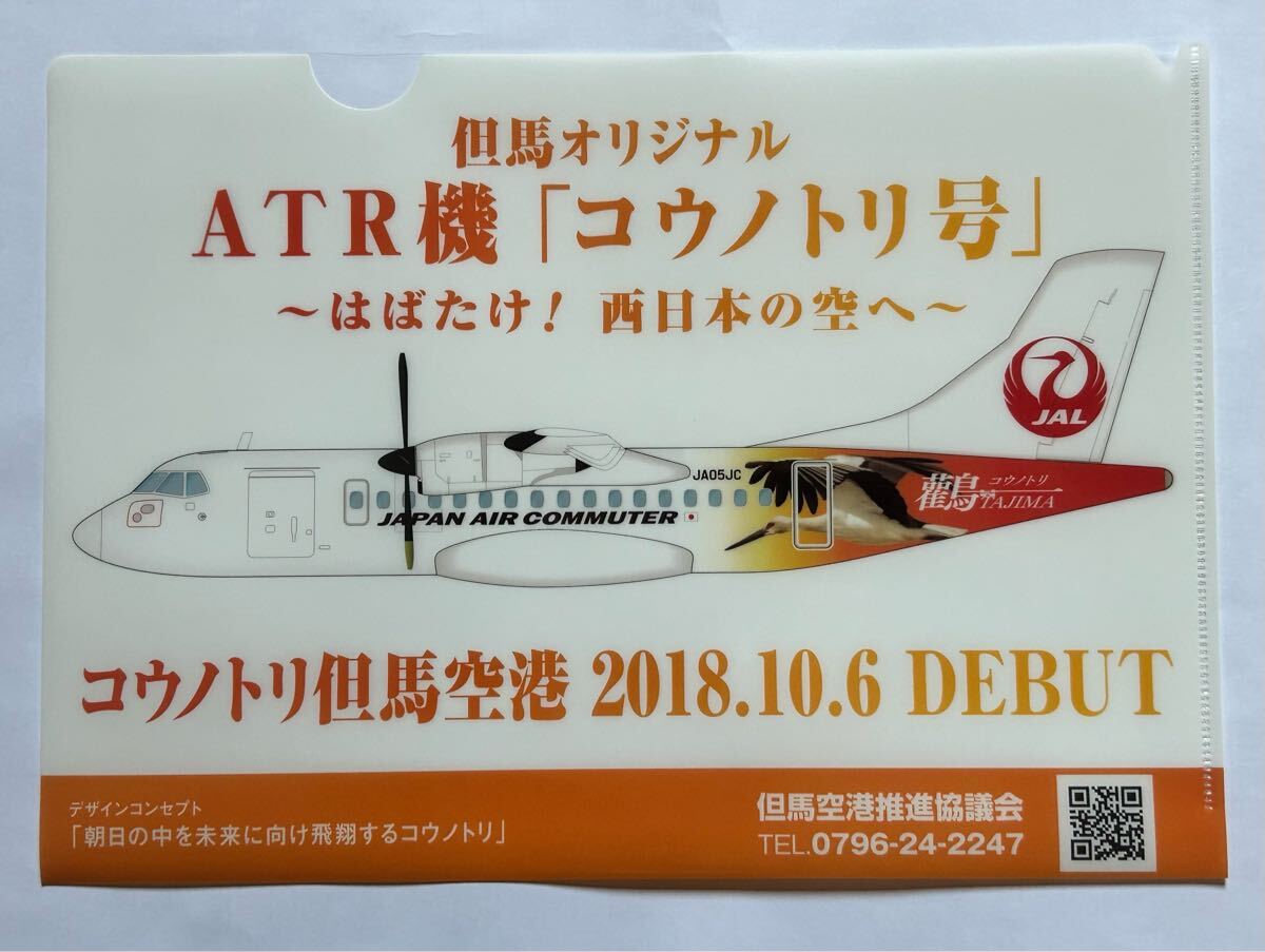 JAC ATR42-600 コウノトリ号のクリアファイル、ぺーパークラフト、チラシのセットです。就航の時に配布された物です。商品は新品の未使用品ですが、配布された物ですので、完璧品をお求めの方はご遠慮ください。