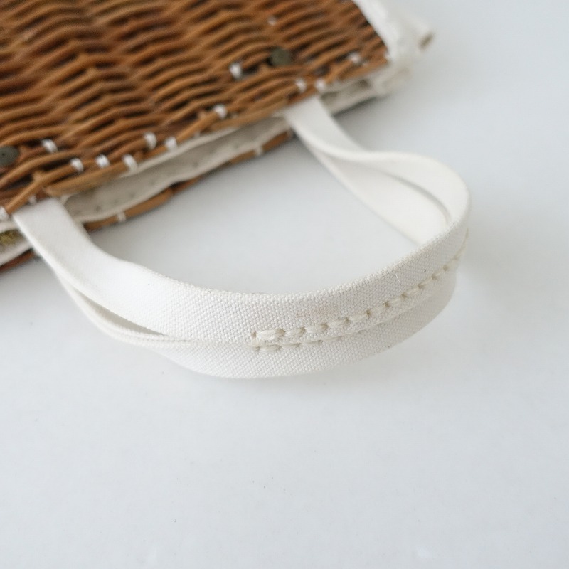 | ユーズドで底にうっすら擦れ汚れ、持ち手にうっすら汚れが見受けられます。 ご理解いただける方のご購入をお待ちしております。 箱や保存袋がある場合はお付けしますが、汚れや破損等がある場合がございます。ご了承の上ご購入下さいませ。エバゴスの製品は職人が一つ一つ手作業で制作しており、新品でも小傷や色ムラ・籐の歪み・個体差がある等、エバゴスの特性や商品の状態をご理解の上お求めください。 |