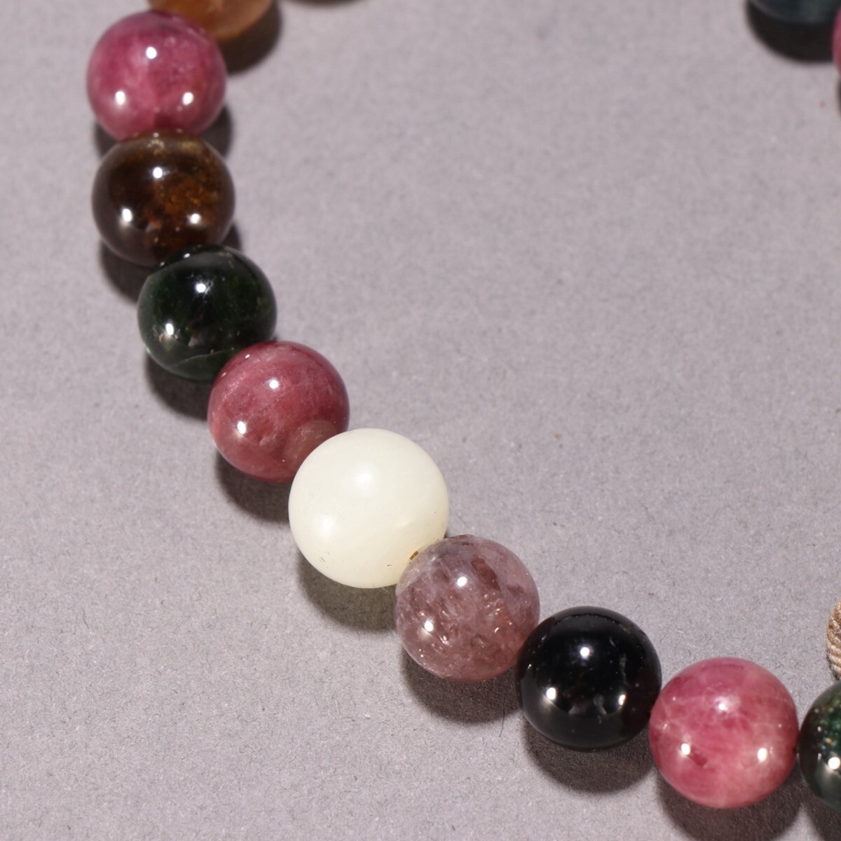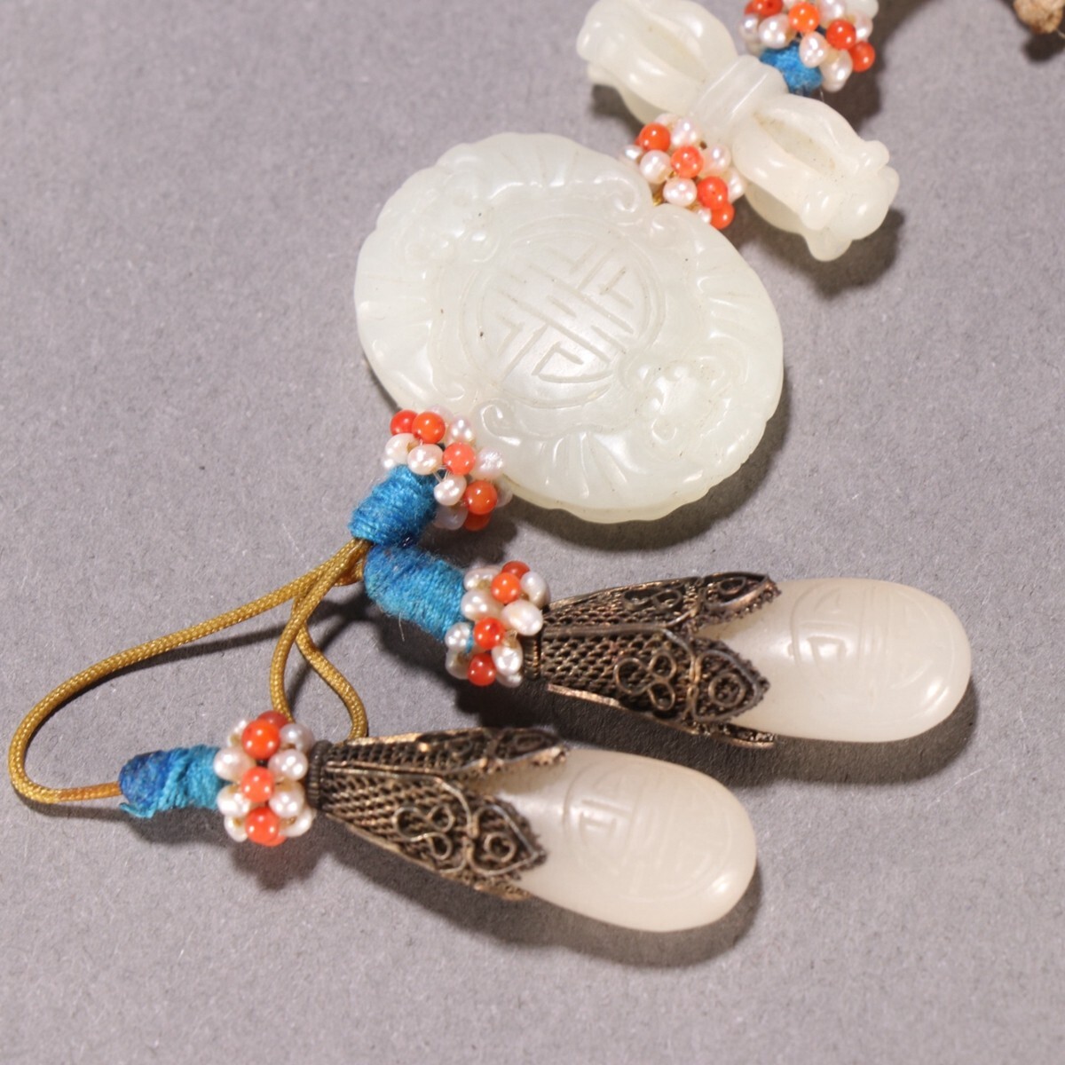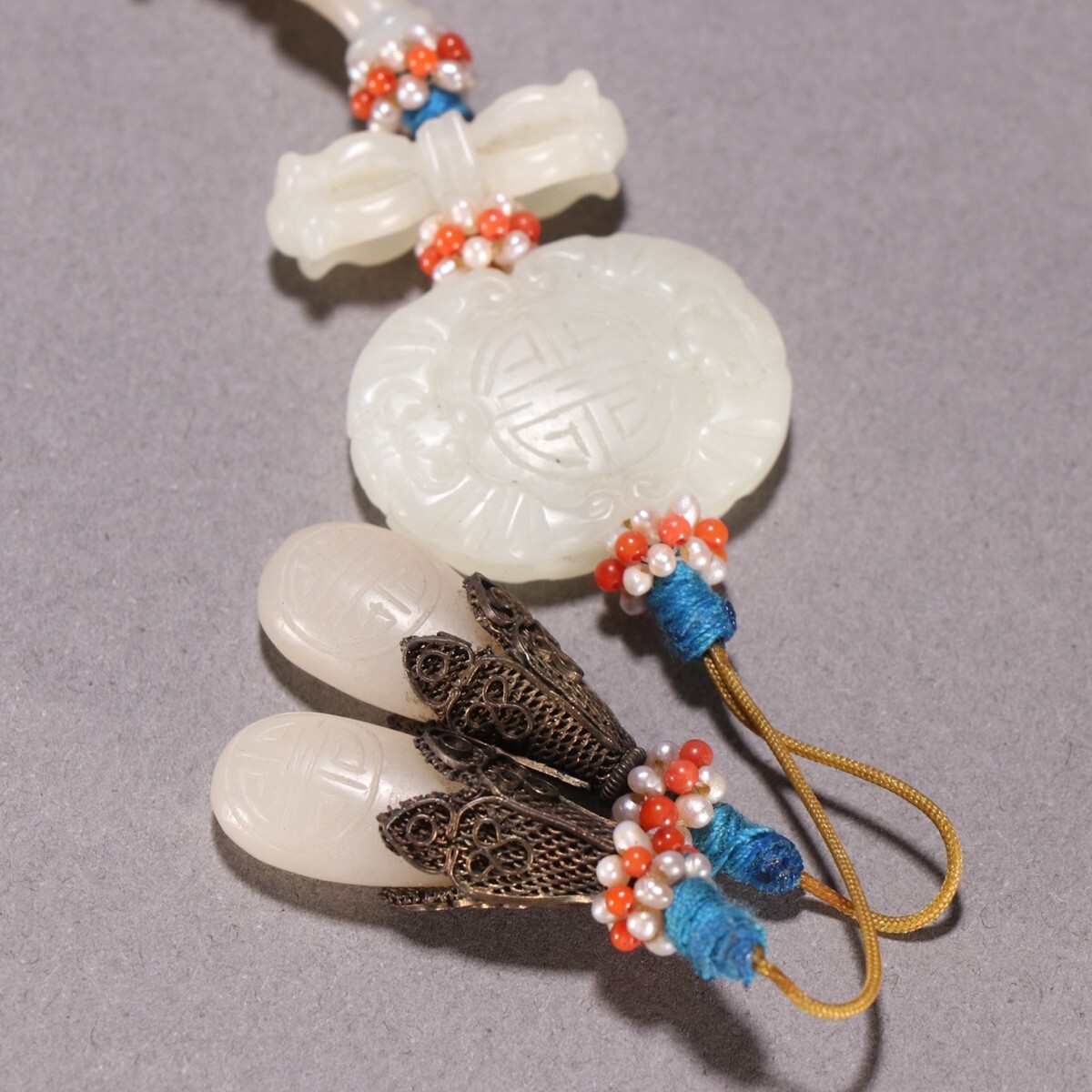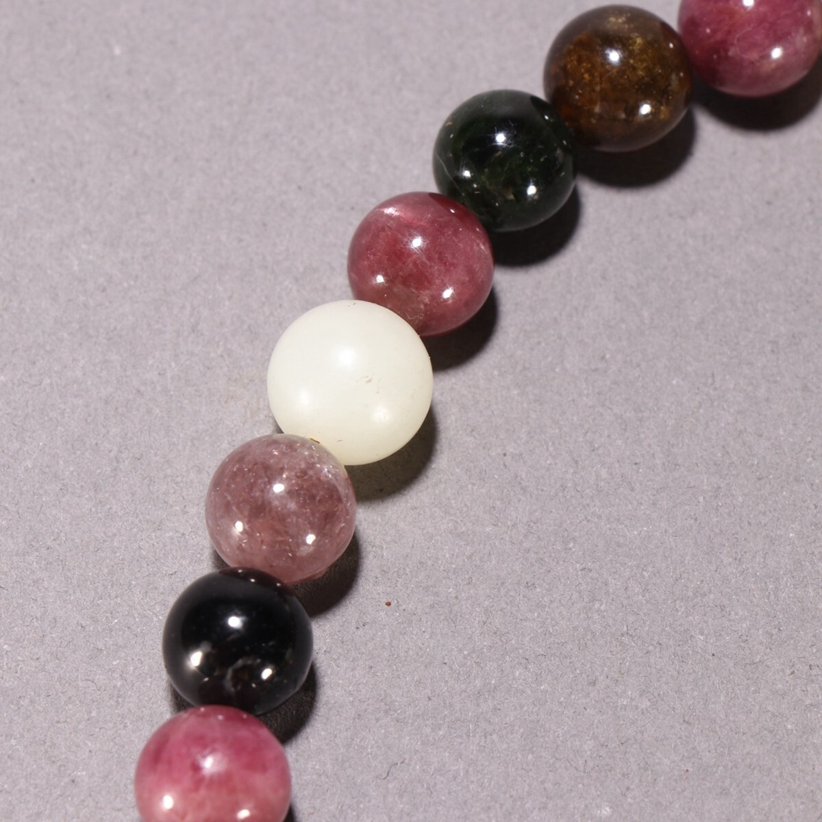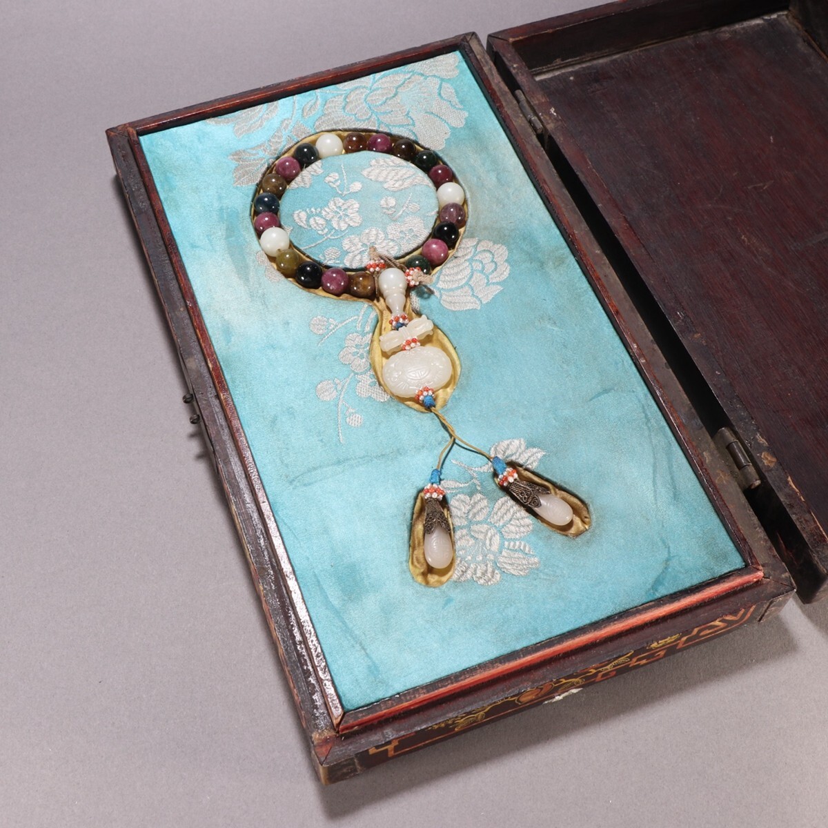 清時代 碧璽彫 十八子手持 和田玉隔珠【仁】極細工 手彫り 裝身具 古賞物 中国古美術 蔵出