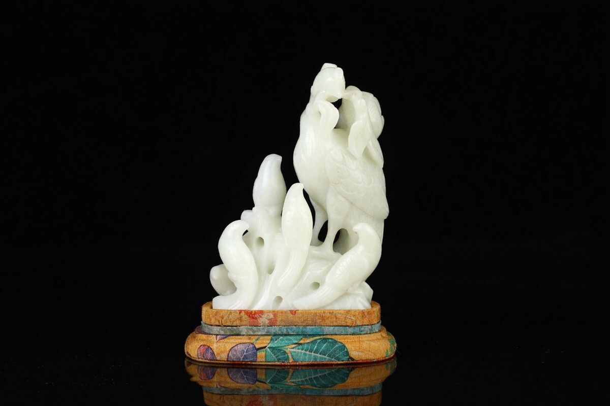 「清時代 和田玉 白玉彫り 花鳥擺件」極細工 擺件 中国古賞物 古美術 旧蔵出