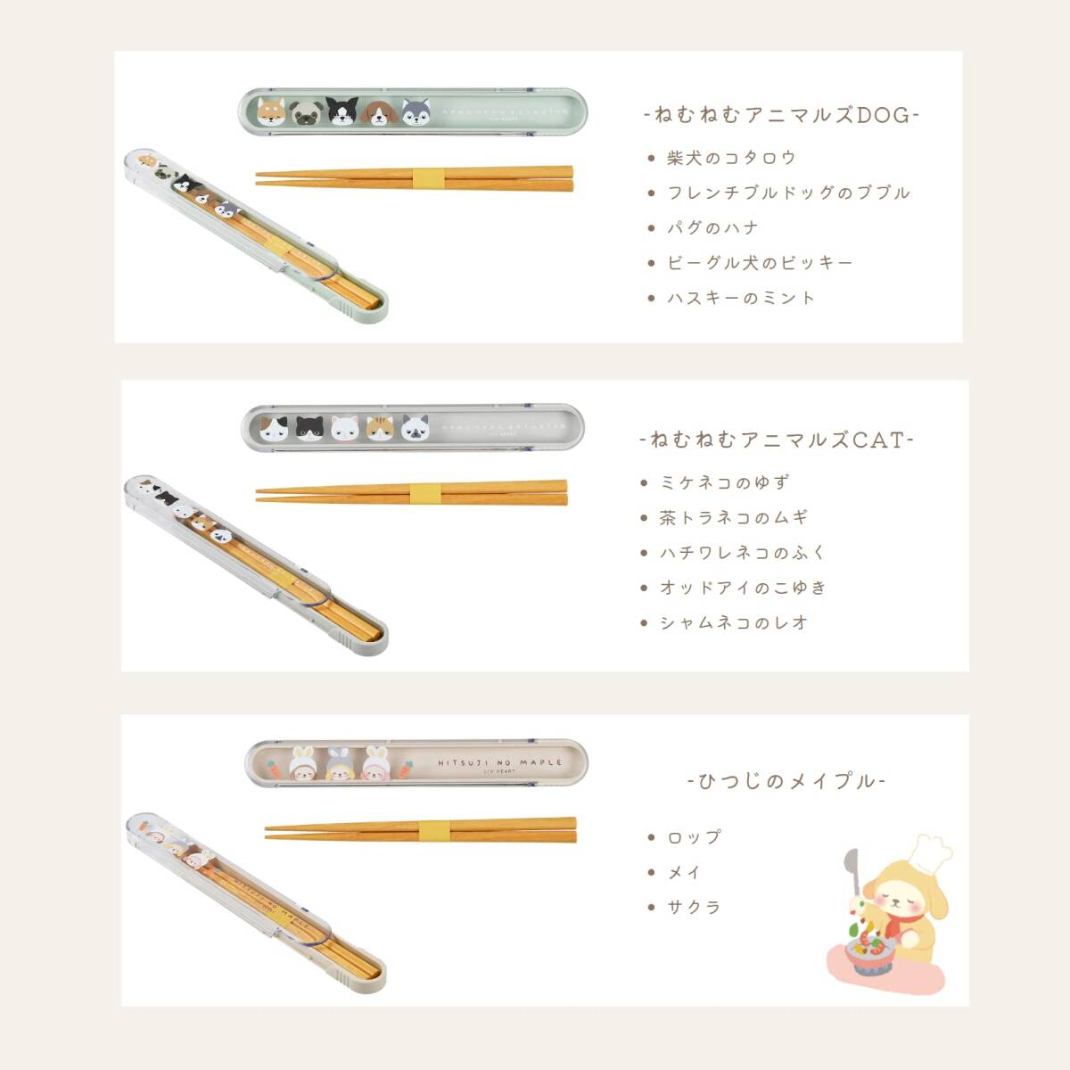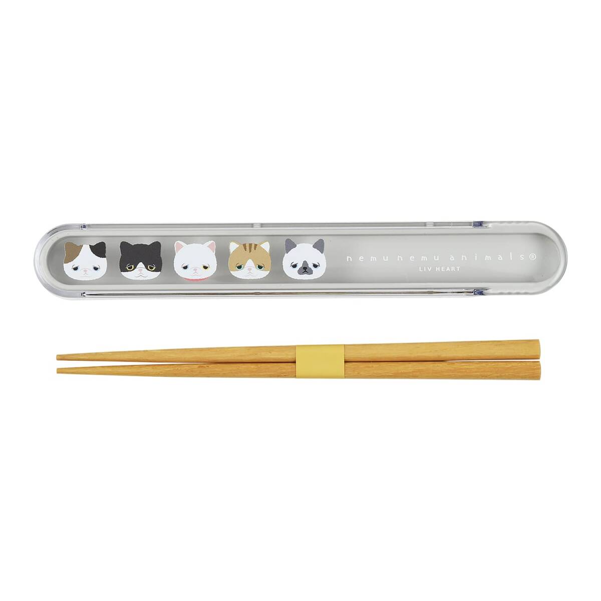 LIV HEART りぶはあと(Livheart) 箸・箸箱セット ランチグッズ ねむねむアニマルズ CAT (箸本体:全長約18cm) お弁当