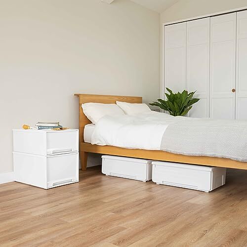 クローゼットの収納に最適な収納ケースです。積み重ねてもたわみにくい丈夫な前枠が付いています。ボディが透けないタイプなので隠す収納にぴったりです。