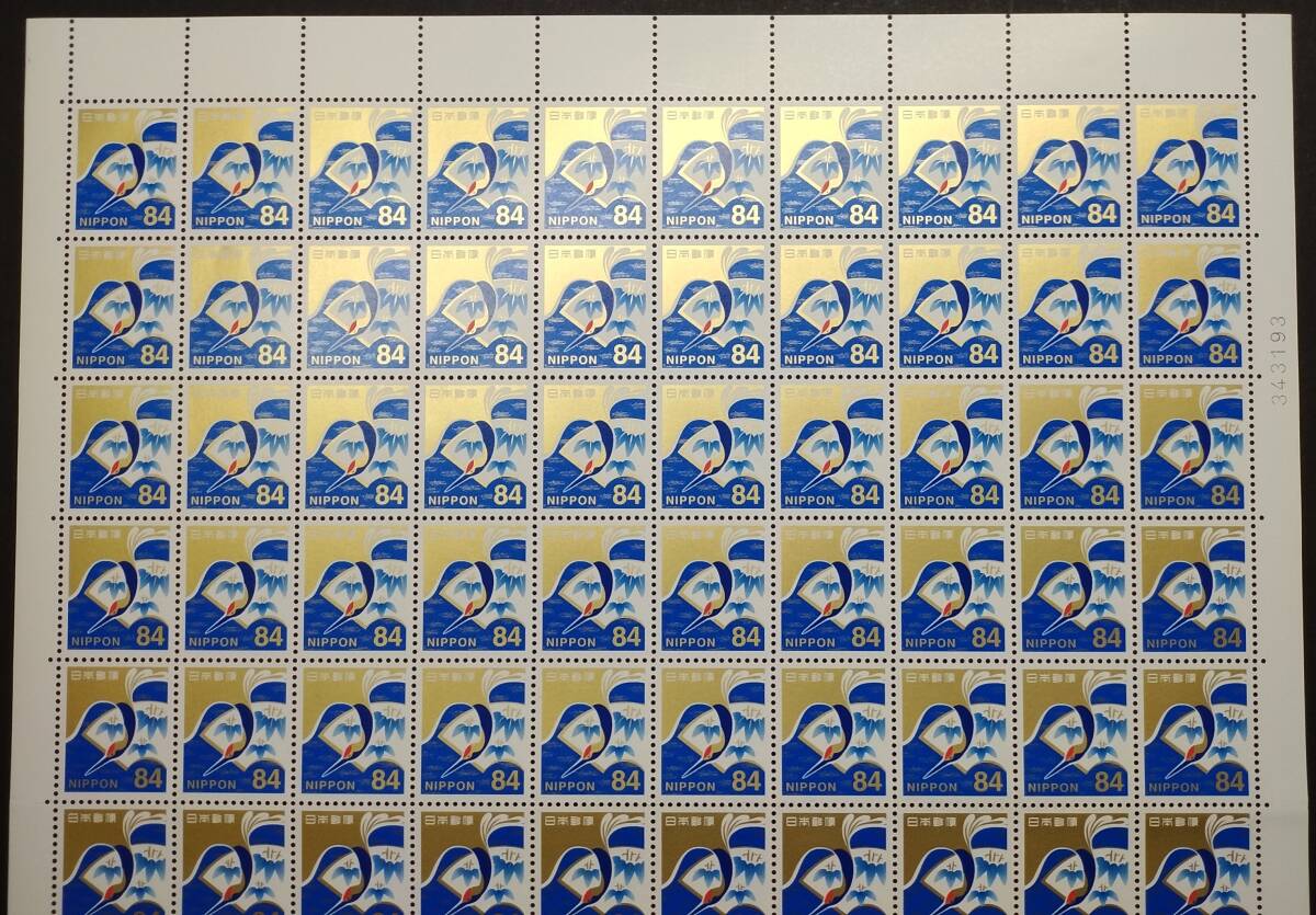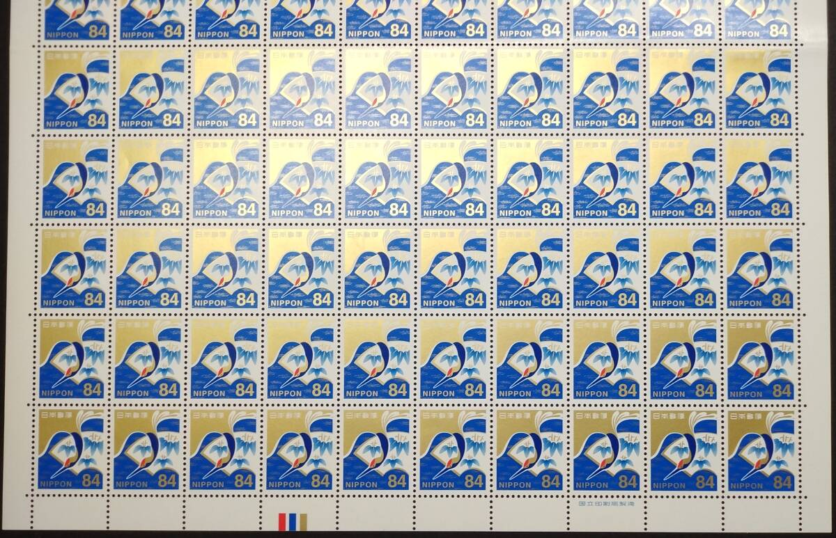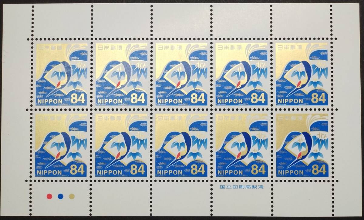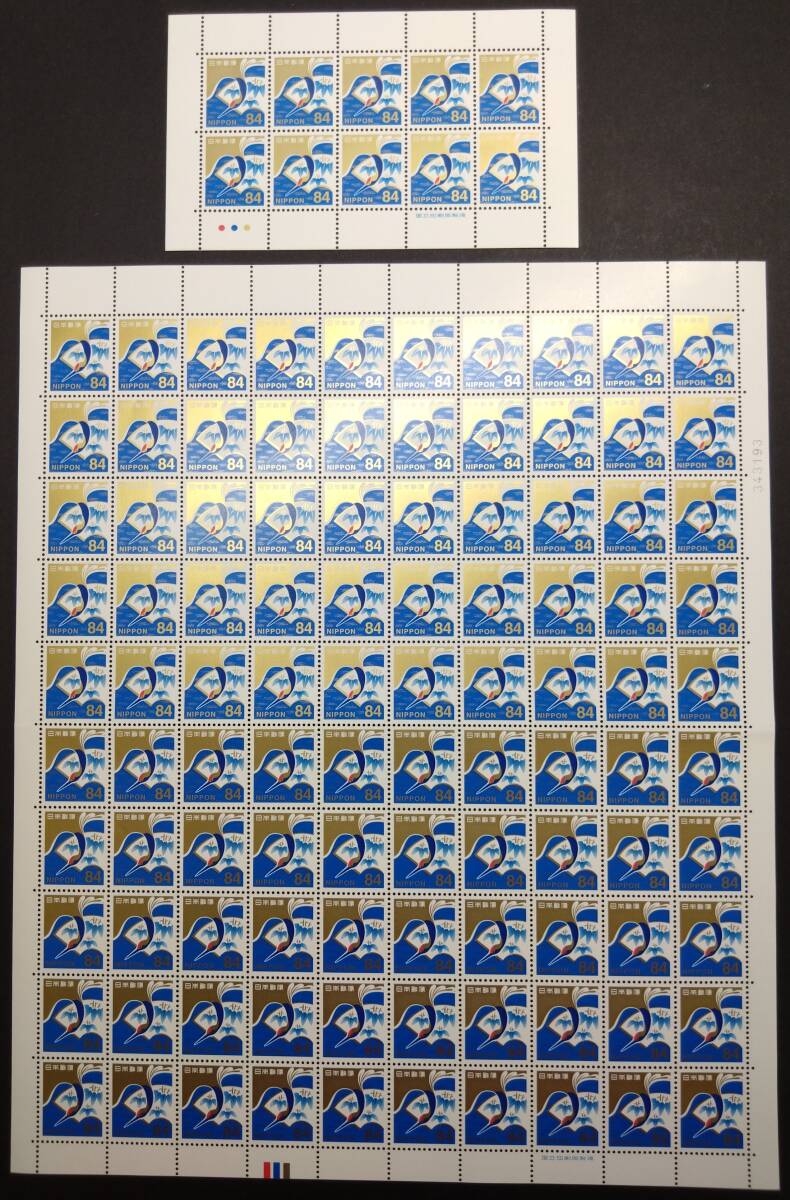 【慶事用84円切手 10面シート+100面1シート[扇面に竹文様と鶴]】⑤ カラーマーク付 裏面のりアリ 未使用 美品 慶弔用切手 慶事用84円切手100面シートは短期間販売の貴重なシートです。 この慶事用84円切手は、発行当初10面シートで販売されました。(2019年8月20日発行) そして100面シートに切り替えられました。(2023年6月下旬切り替え) ところが郵便料金改定により急遽販売終了となりました。(2024年9月30日販売終了決定) よってこの慶事用84円切手100面シートは2023年6月から2024年9月30日まで のわずか1年3ケ月しか販売されていない貴重なシートです。 是非この機会にあなたのコレクションに10面シ-トと100面シートの両方を加える事を ご検討ください。 |