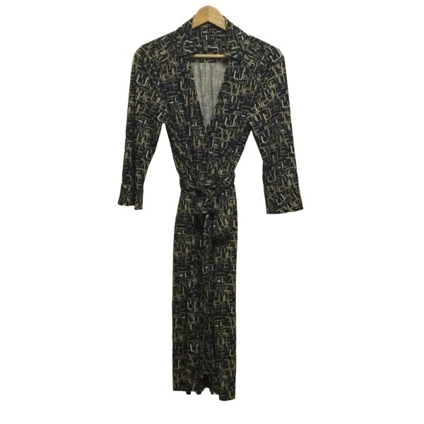 レリアン Leilian サイズ11 M - ダークブラウン×ベージュ×マルチ レディース 七分袖/ロング/カシュクール ワンピース
