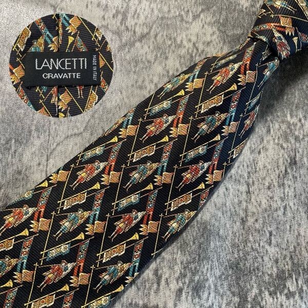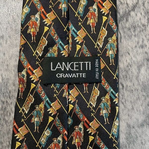 [KN231] LANCETTI ブラック シルク ネクタイ