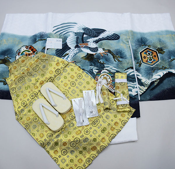 項目 | 五歳羽織袴フルセット ・羽織 ・着物 ・長襦袢 ・袴 ・草履 ・角帯 ・扇子 ・短剣 ・羽織紐 ・お守り |