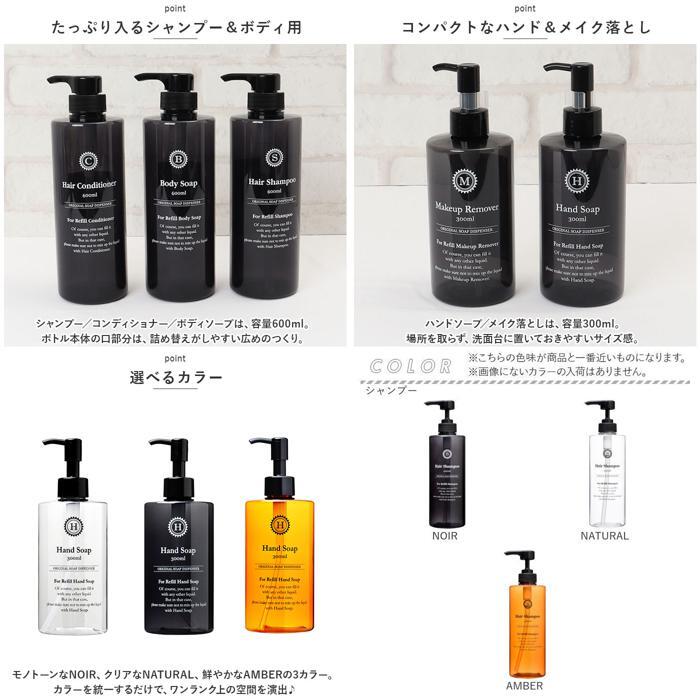 | 商品説明 | ・・水回りをおしゃれに☆気分を上げてくれる詰め替えボトル「ire-mono for BATH ROOM」が新登場。 ・【スタイリッシュなデザイン】 ・ボトルに英字やロゴをプリントした、シンプルなデザイン。ごちゃっとしがちな洗面やお風呂場がすっきりまとまって、生活感を抑えたスペースに。 ・【軽量なプラスチック製】 ・サッと手に取れる軽量設計。割れにくく角のないつくりなのでお子さまが触れたり、万が一落としてしまっても安心。 ・【残量が確認しやすいクリアカラー】 ・外側からも残量を確認しやすいクリアカラーボトル。補充のタイミングがすぐにわかる!(※NOIRは暗めのカラーなので、中身が少し見えにくい仕様です。) ・【しっかり吸い出すロングノズル】 ・ノズルは底まで伸びるロングタイプ。少なくなったソープ類も、吸い出しやすいのがポイント。 ・【たっぷり入るシャンプー&ボディ用】 ・シャンプー/コンディショナー/ボディソープは、容量600ml。ボトル本体の口部分は、詰め替えがしやすい広めのつくり。 ・【1プッシュで3ml吐出】 ・何度もプッシュする手間を軽減。ロングヘアや、たっぷり使いたい方にもぴったり。 ・【コンパクトなハンド&メイク落とし】 ・ハンドソープ/メイク落としは、容量300ml。場所を取らず、洗面台に置いておきやすいサイズ感。 ・【1プッシュで1グラム】 ・・1度に出てくる量が少なく、無駄使いの防止にも! ・【選べるカラー】 ・モノトーンなNOIR、クリアなNATURAL、鮮やかなAMBERの3カラー。カラーを統一するだけで、ワンランク上の空間を演出♪ |