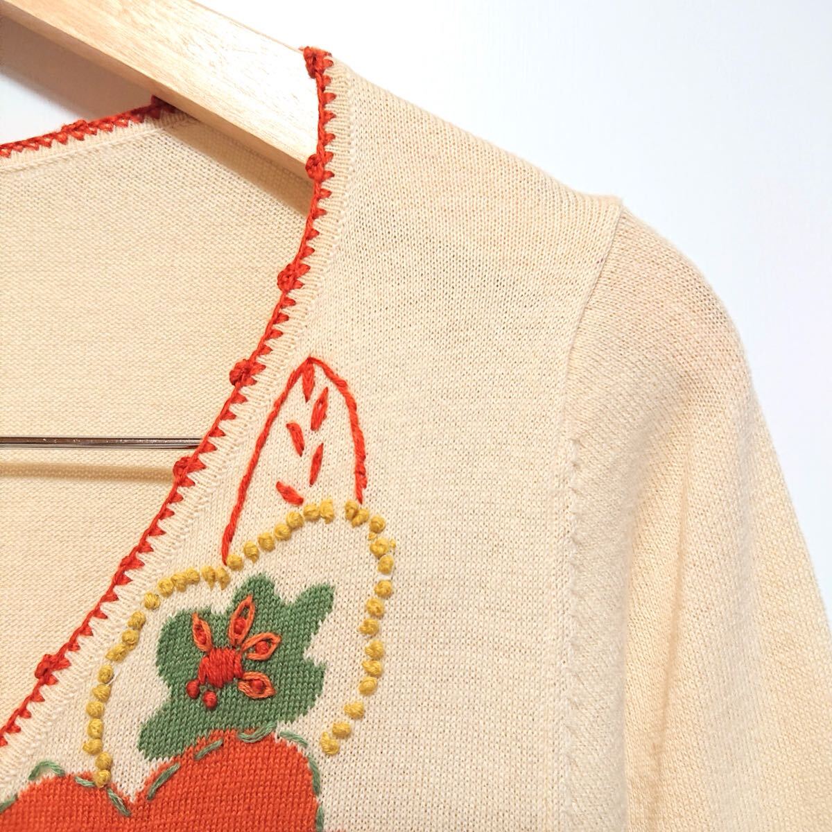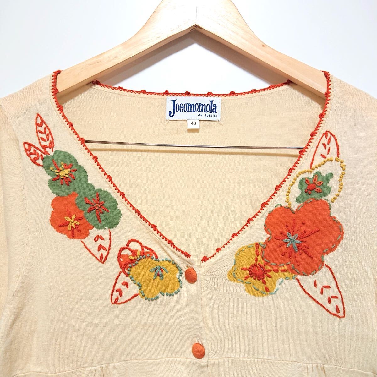 h3726gg Jocomomola (ホコモモラ) サイズ40(M〜L位) カーディガン ベージュ お花モチーフ レディース Vネック かわいい おしゃれ 羽織り