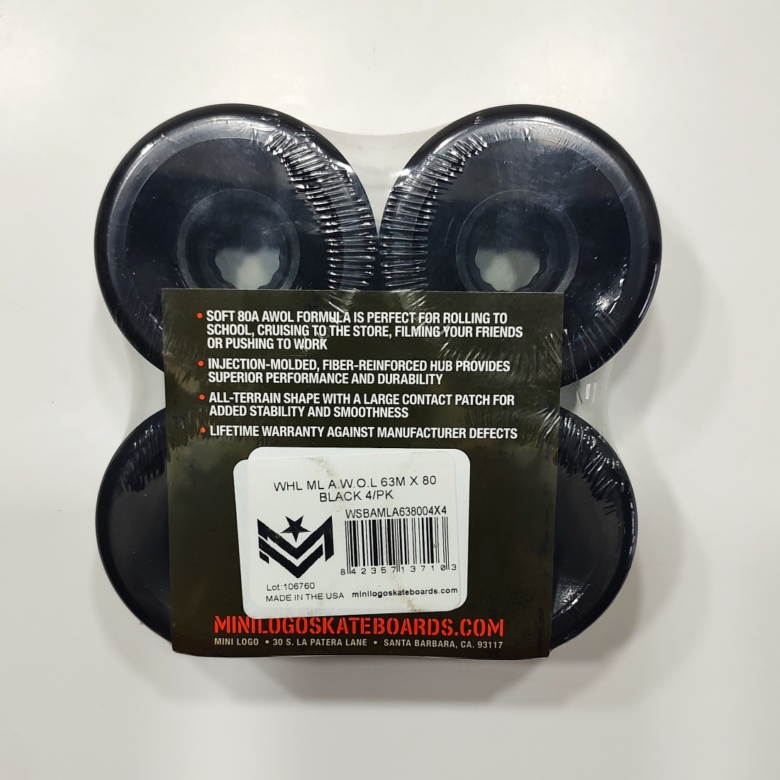 ミニロゴ ウィール MINI-LOGO WHEELS AWOL 80A 63mm BLACK ソフトウィール ATF クルージング 4個セット