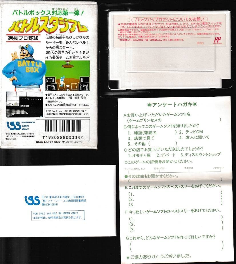 □送料無料■Y31■FCソフト■バトルスタジアム 選抜プロ野球■(箱、説明書付き)