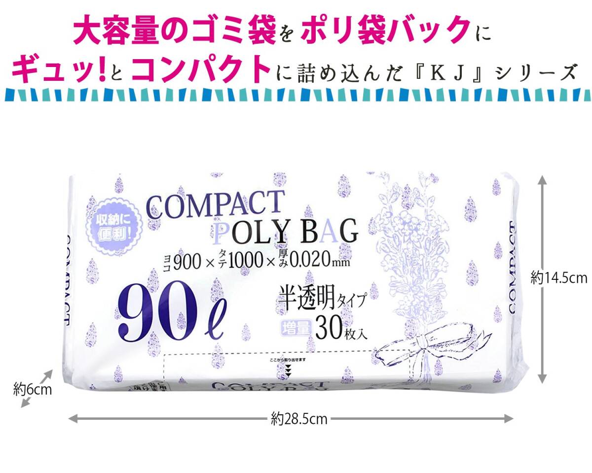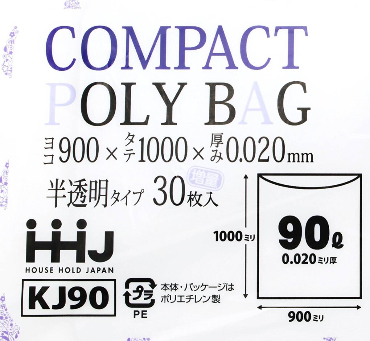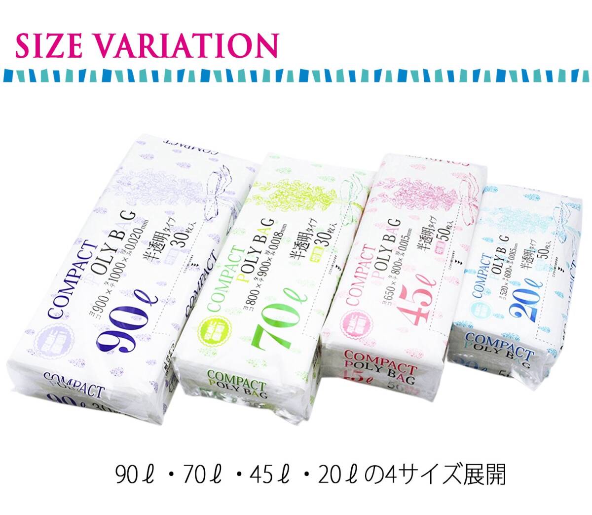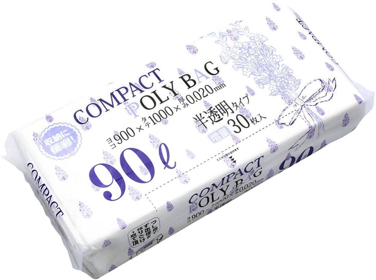 コンパクト ポリバッグ 半透明 ポリ袋 90L 30枚入 W90×D100cm×厚さ0.02mm 収納便利 1枚づつ取り出せるコンパクトタイプ