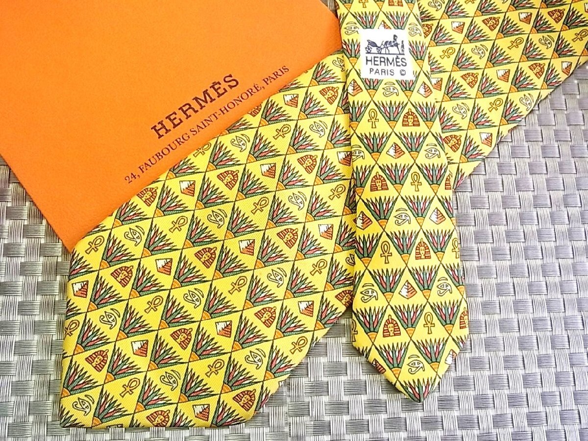 ♪39491D♪状態並品【ピラミッド ツタンカーメン 十字架 柄】エルメス【HERMES】ネクタイ