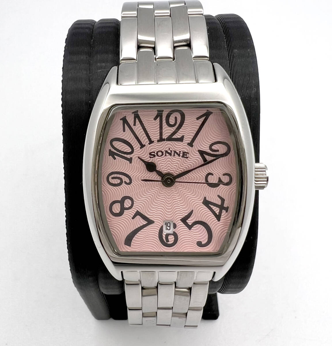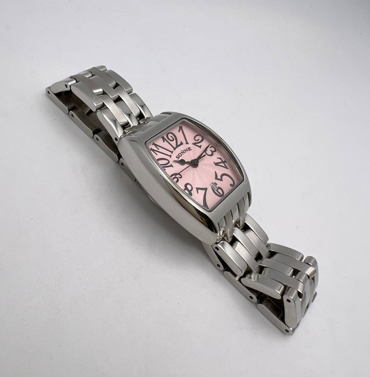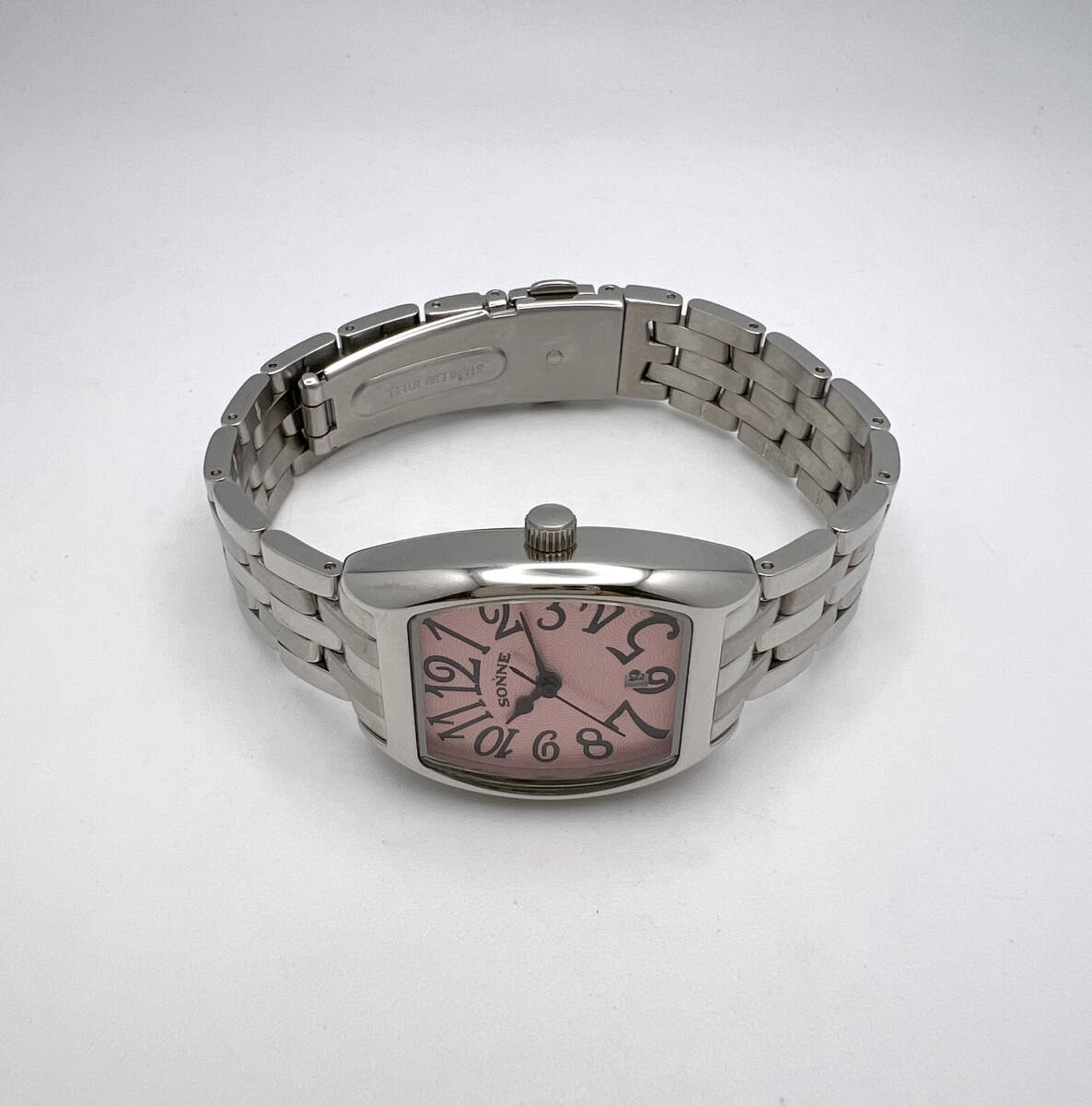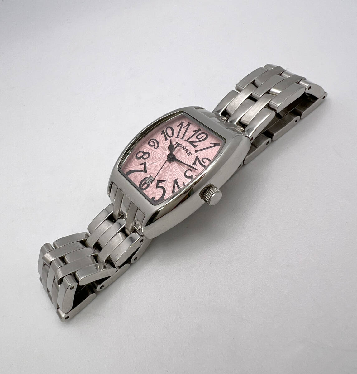 【電池交換済】美品 SONNE ゾンネ クォーツ ピンク文字盤 SS レディース腕時計