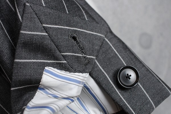 仕様:背抜き仕立て、一つ釦、センターベント、ノータック、AMFステッチ、本切羽