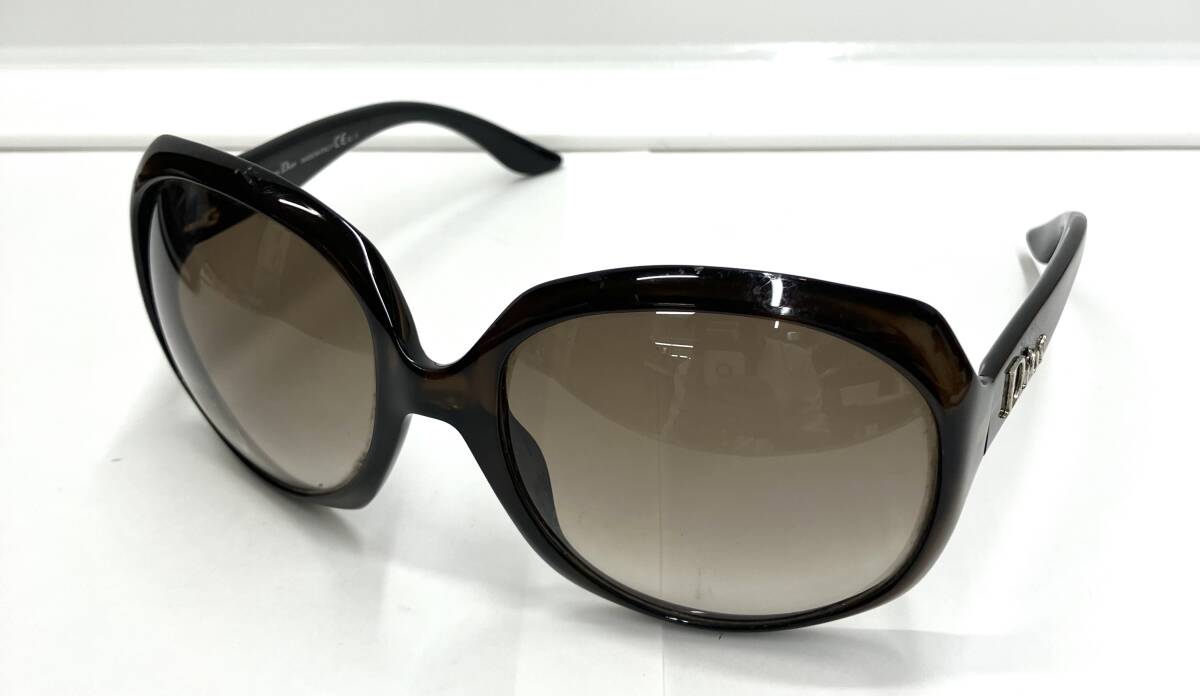 ブランド名:クリスチャンディオール 品名:サングラス サイズ:6220 125 つる:12.5㎝ フロント:14㎝ レンズ(フレーム含む):6.5×6㎝ 状態:レンズ・フレーム傷多め。つる歪み有り。つるのネジ緩み有り。 付属品:保護袋 | ||||||