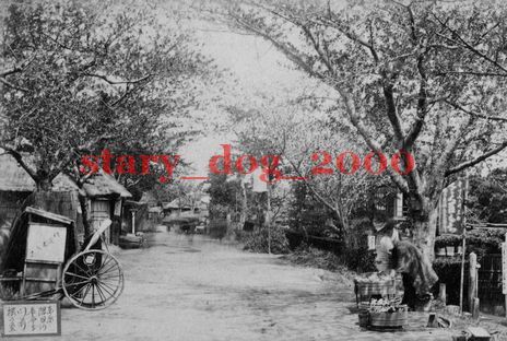 複製復刻 絵葉書/古写真 東京 向島 隅田川 長命寺門前桜の室 明治期 WA_095(桜餅 花見 人力車 行商人