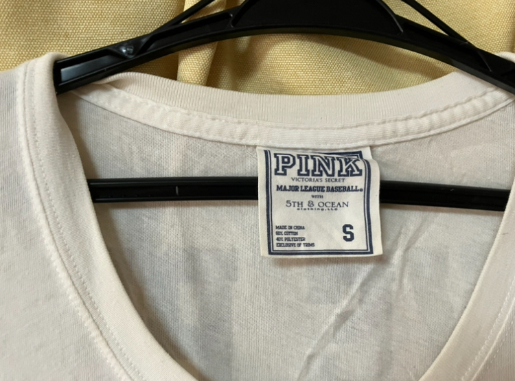 おなじみ 大人気、Victoria’s Secret PINKビクトリア シークレット ピンク MAJOR LEAGUE BASEBALL 白のロゴTシャツ サイズSです。