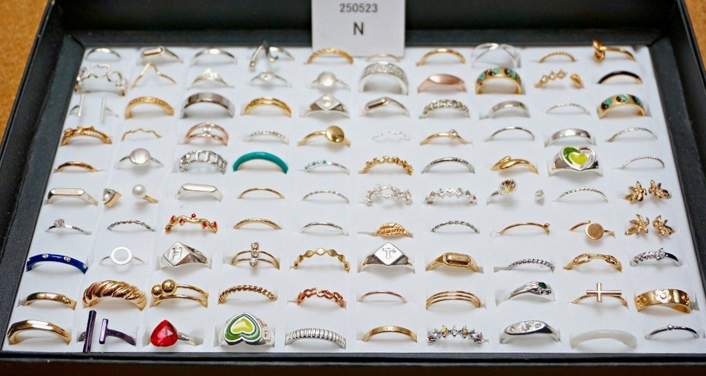 細身のメンズ&レディース ファッションリング 500点セットです。