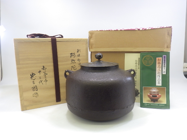 | ★☆h5G090Z 茶道具 茶釜 御釜師 十二代加藤忠三郎 利休好写 阿弥陀堂釜 栞 共箱 未使用☆★ | ||