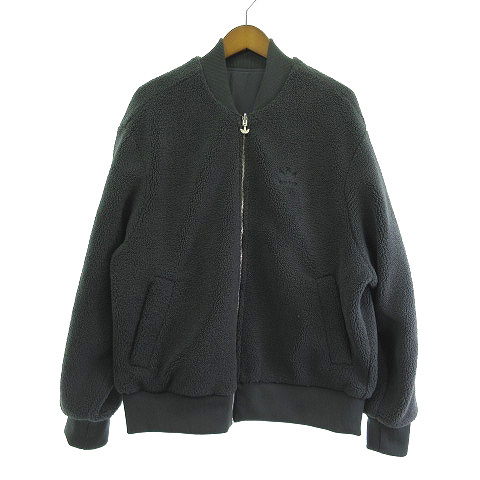 アディダス adidas リバーシブル フリースジャケット ブルゾン グレー XL メンズ