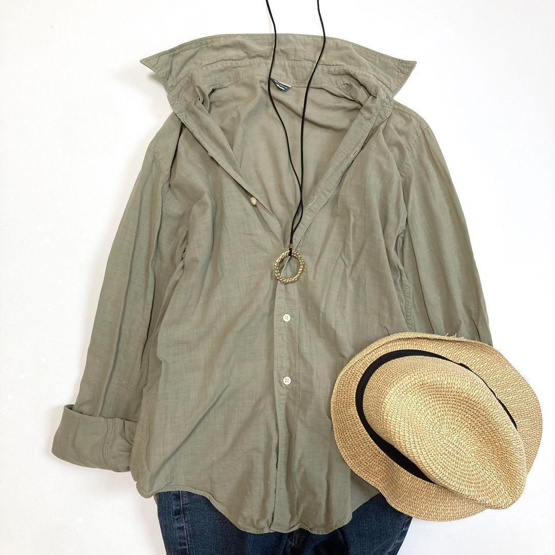 45rpm コットンシャツ 長袖 刺繍 アースカラー 日本製 サイズ2