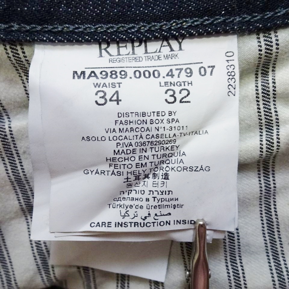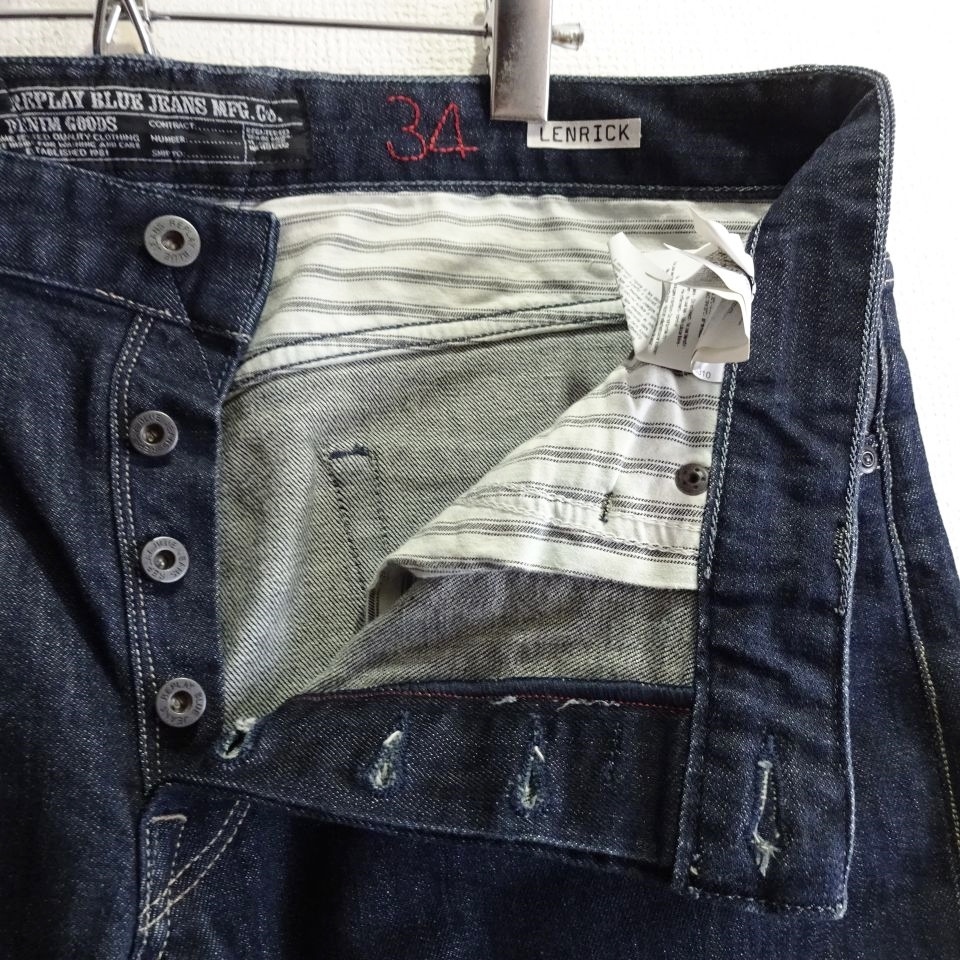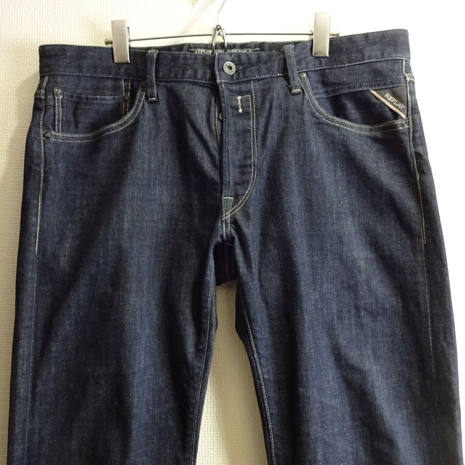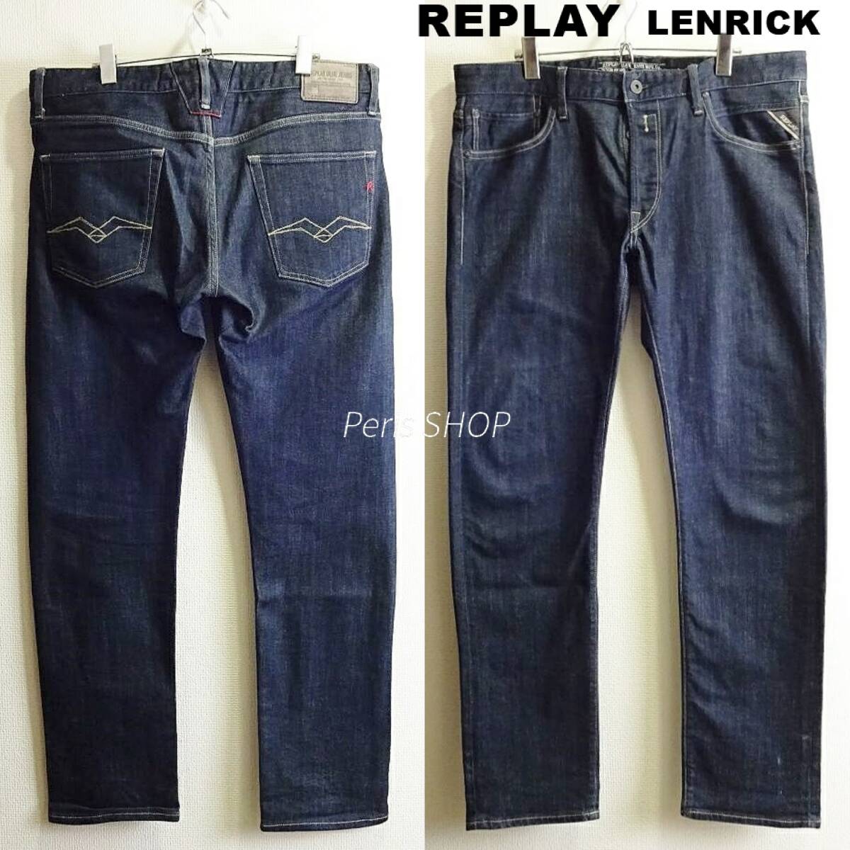 即決★ 送料無★ リプレイ LENRICK W93cm スリムストレートデニム ストレッチ 濃紺 Sz.34 REPLAY J113