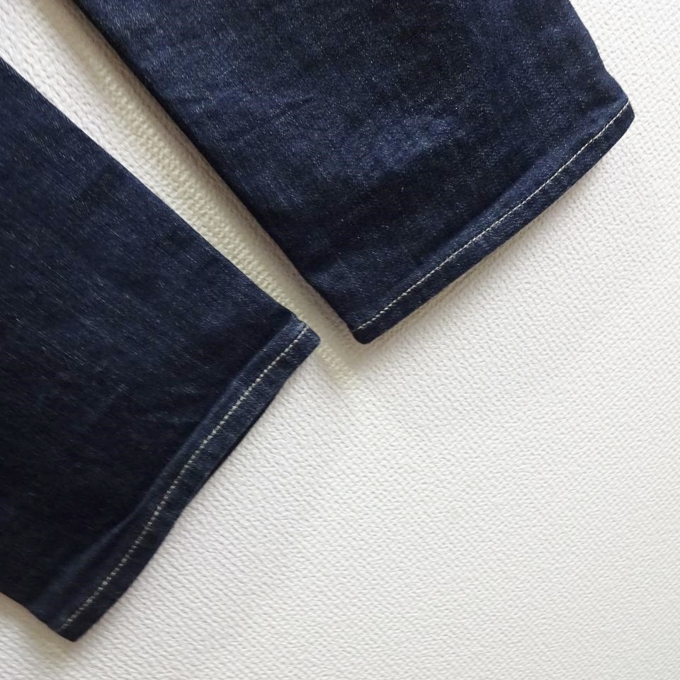 ◆濃紺のリジッド風デニムで、カジュアルからキレイめコーディネートまで幅広く活躍する万能アイテムです。