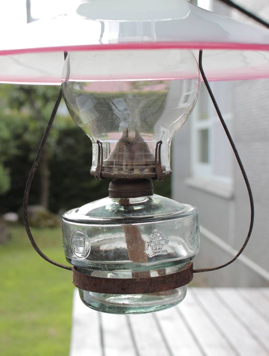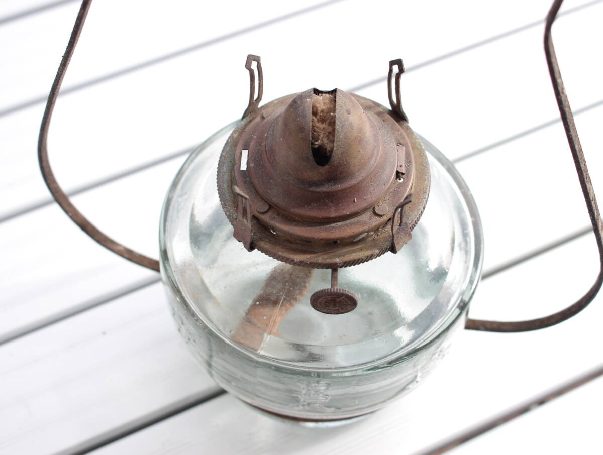 アンティーク オイルランプ 吊下げランプ 吊りランプ 乳白 縁赤 ガラス 電笠 〇ヨ式改良安全壷 エンボス 刻印有り オブジェ インテリア
