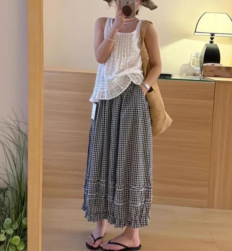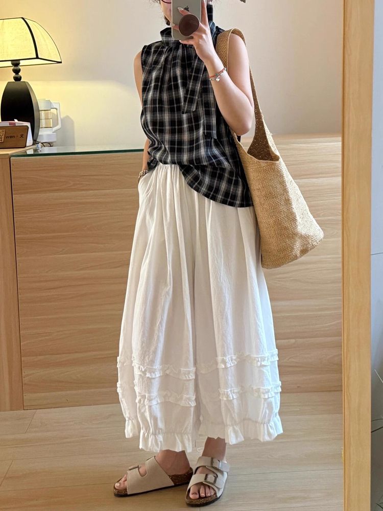 夏新入荷~カジュアルパンツ レディース ワイドパンツ ボトムス 体型カバー ポケット付き 低身長 高身長 大きいサイズ~ホワイト