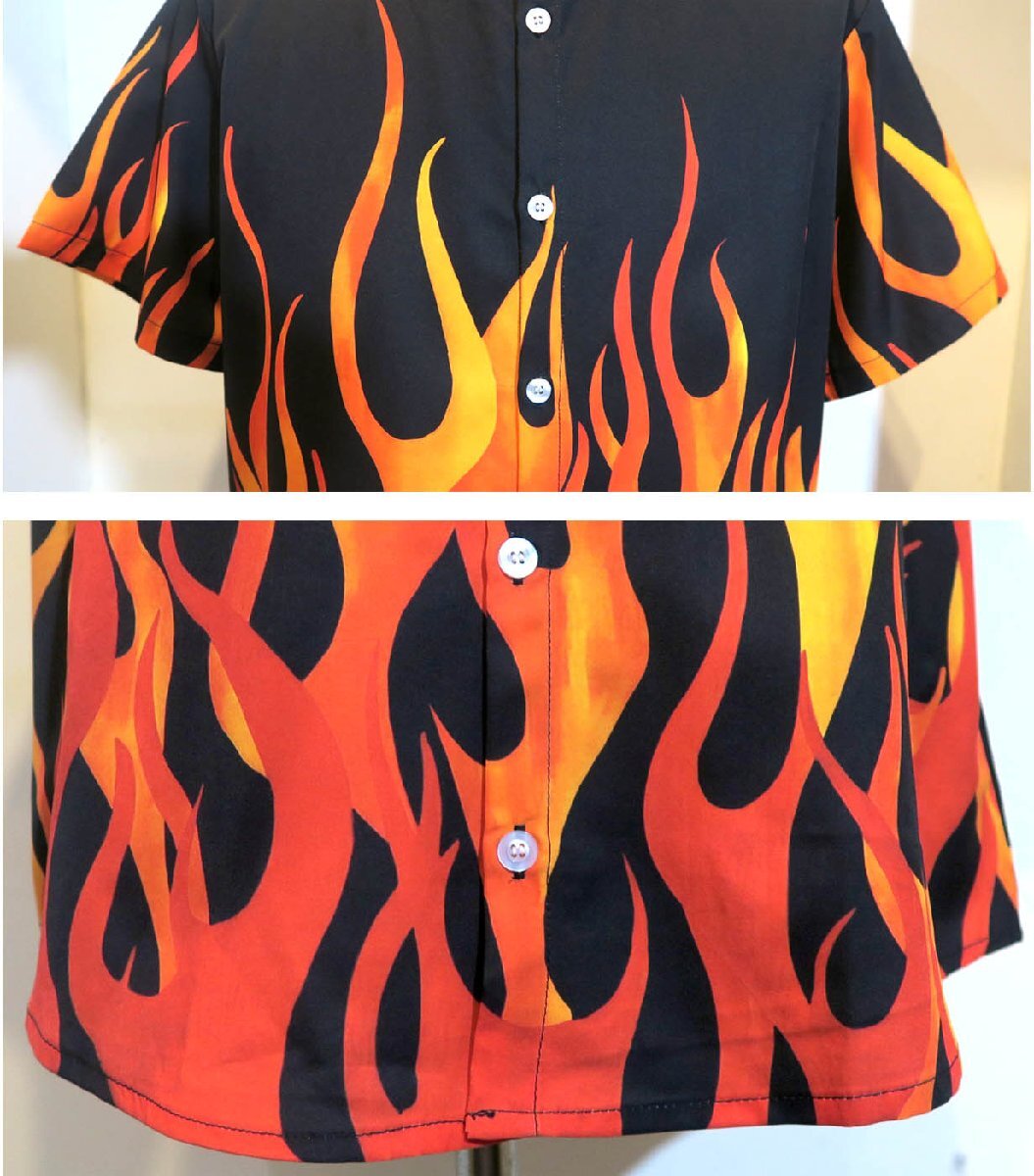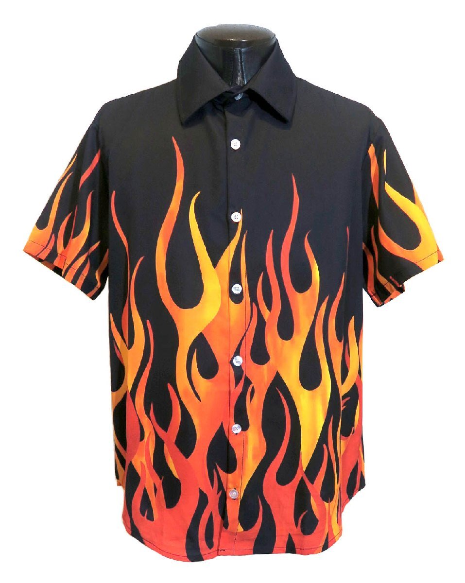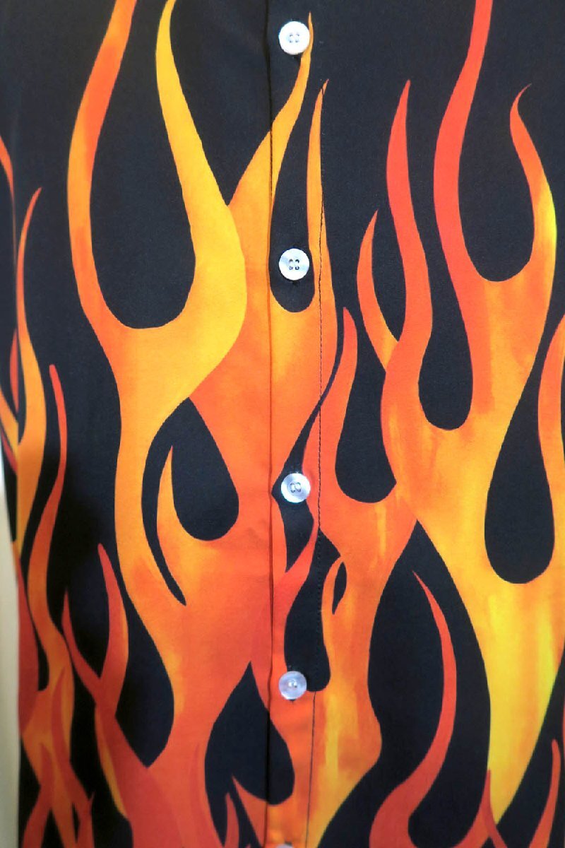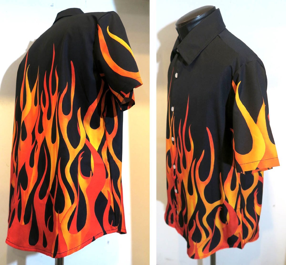新品 Mサイズ ファイヤーパターン 炎柄 シャツ 半袖 黒 オレンジ 1160 メンズ 柄シャツ ロカビリー ヴィジュアル系 バイカー アメリカン