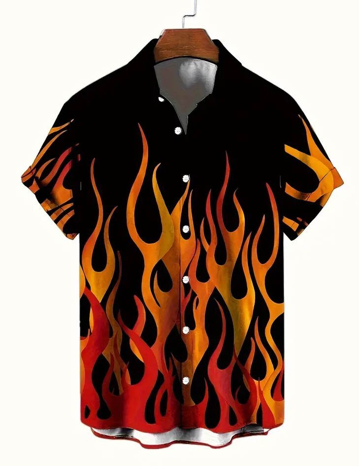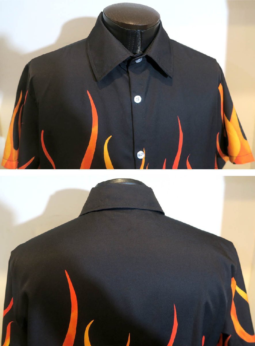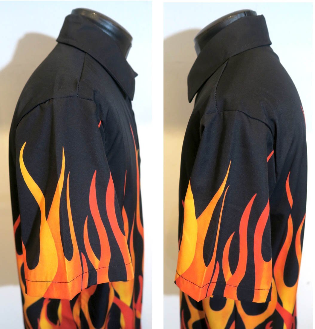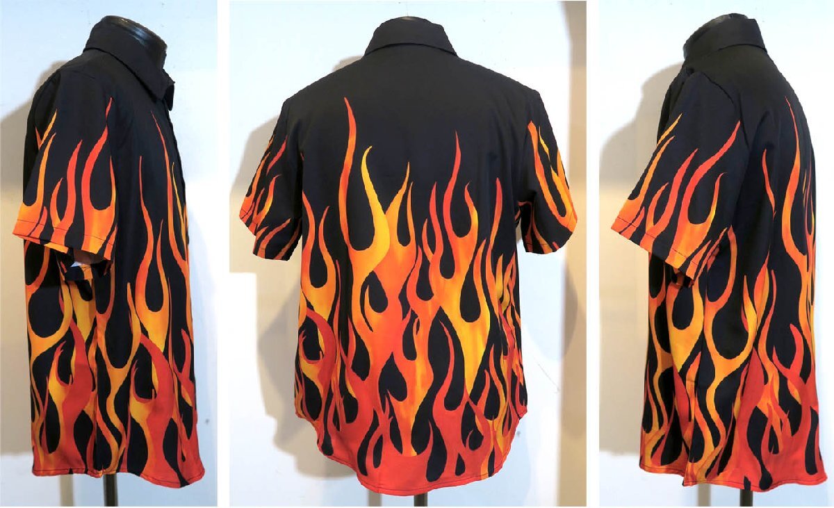 新品 Mサイズ ファイヤーパターン 炎柄 シャツ 半袖 黒 オレンジ 1160 メンズ 柄シャツ ロカビリー ヴィジュアル系 バイカー アメリカン