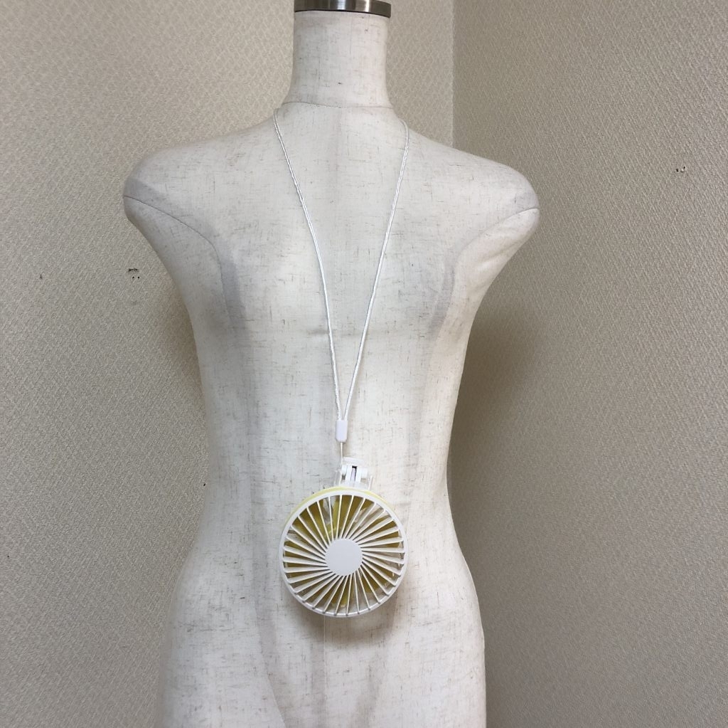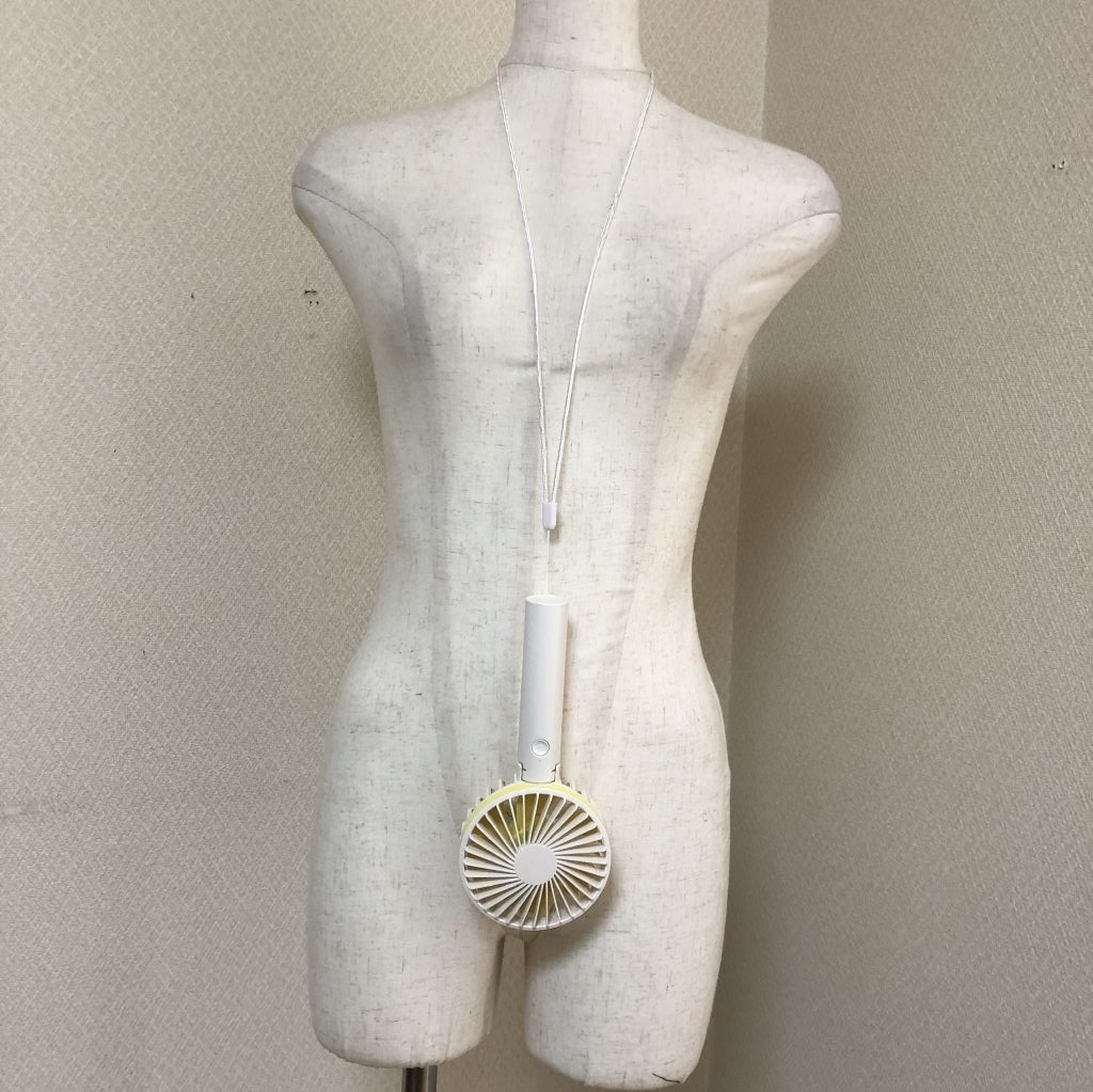 ◆ランク(商品の状態)◆S未使用品ですが、箱に破れがあり、ネックストラップに少し痛みがありますのでご自宅用に。持つ、首にかける、置くの3wayで使えるハンディファン結構風力も強く重宝します。熱中症対策にマストなアイテムです!首から吊り下げることができますのでライブ、テーマパークなどに持っていくと便利。