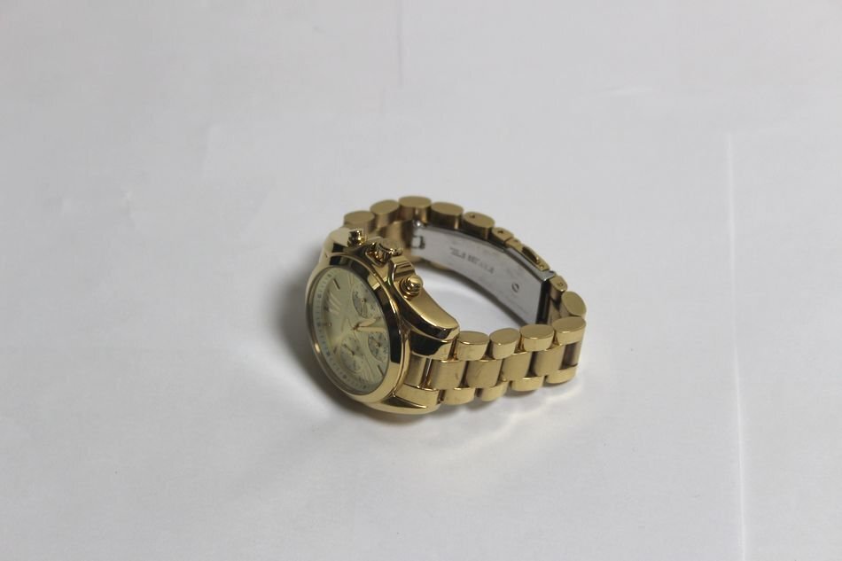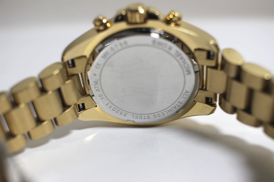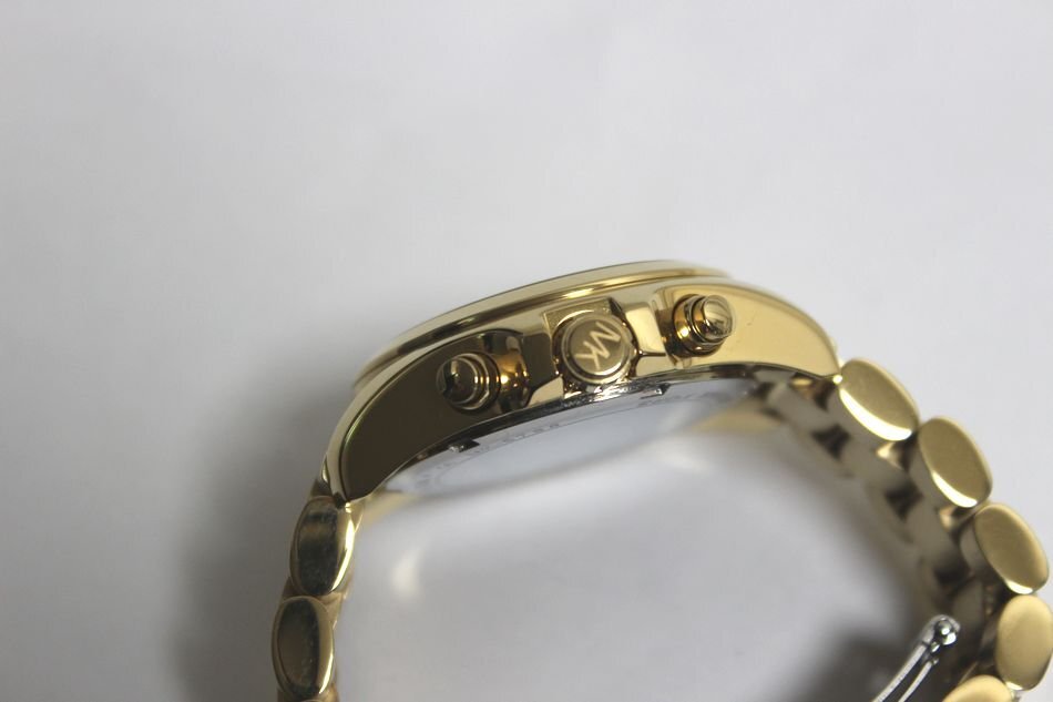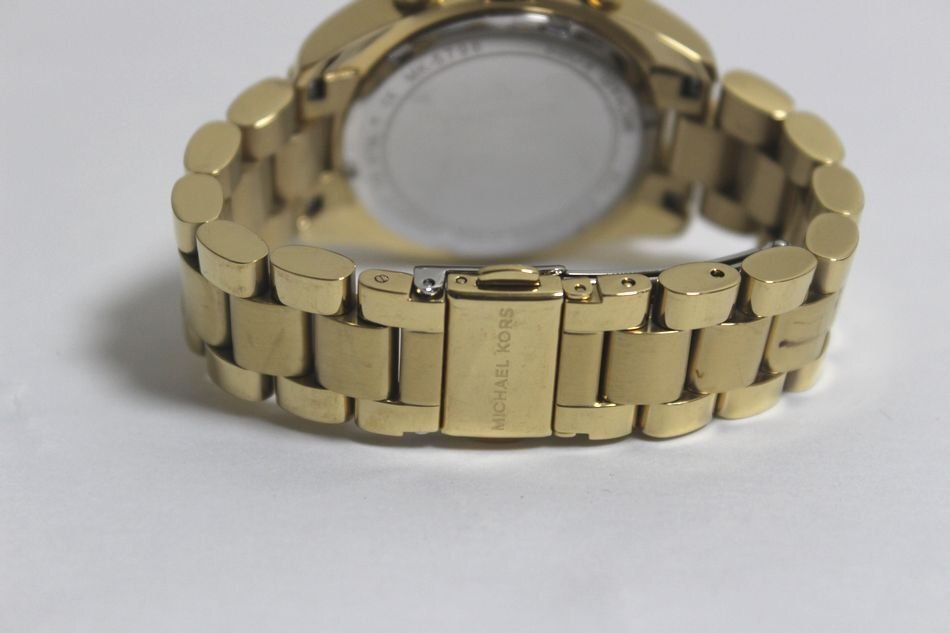 動作品 MICHAEL KORS 腕時計 MK-5798 3針 デイト クロノグラフ SS レディース メンズ 男女兼用 クォーツ ゴールド系 マイケルコース 中古