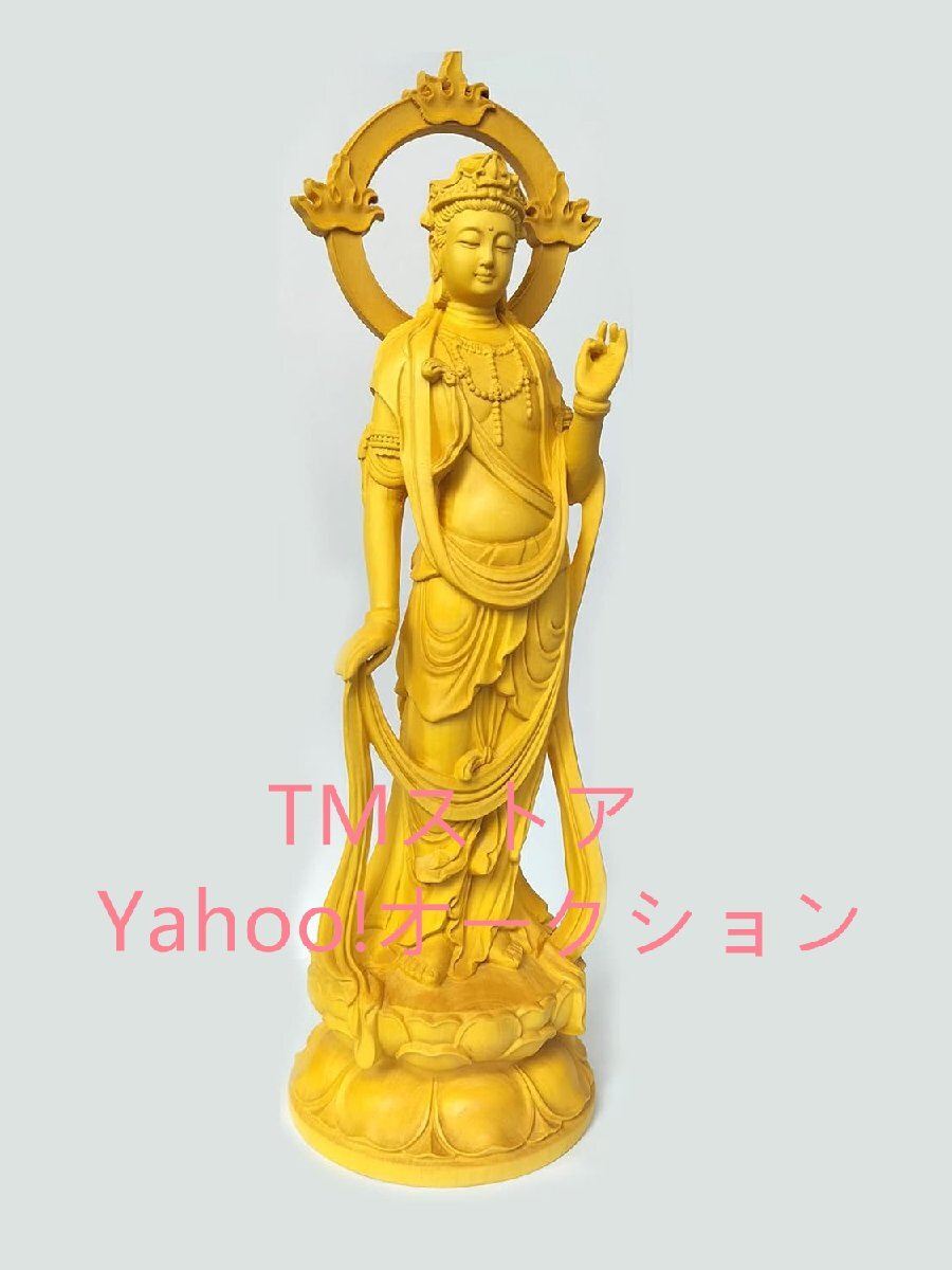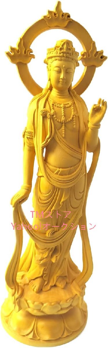勢至菩薩像 7.2寸 高級天然ツゲ木彫り 立像 木製仏像 仏教美術品 黄楊 柘植 仏像彫刻 ブッダ 縁起物 飾り物 インテリア