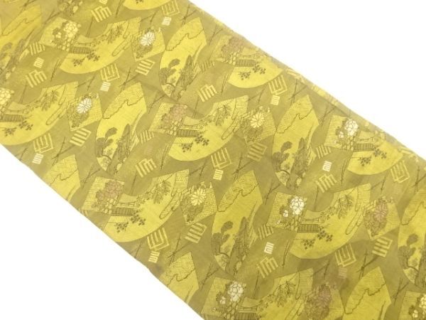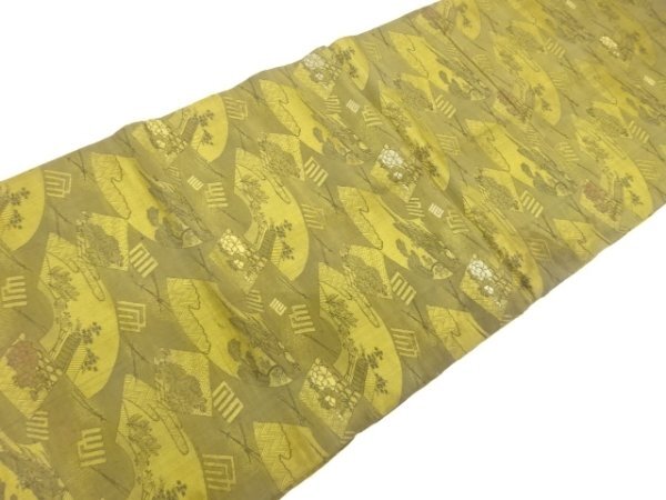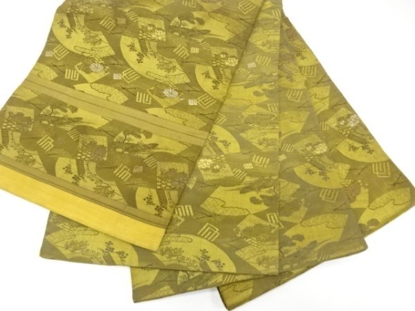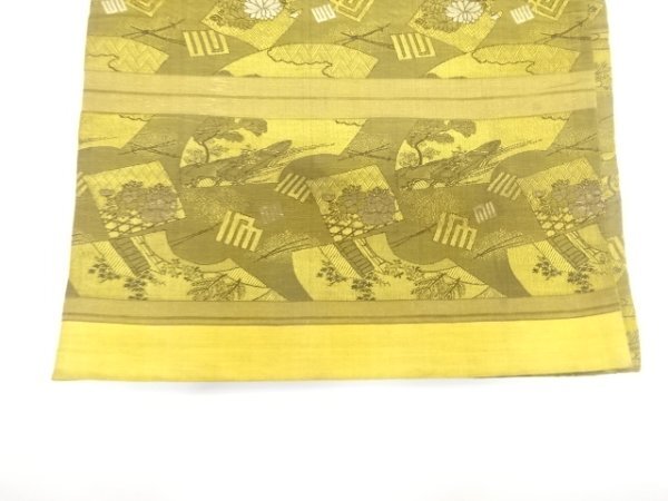 ys7509204; 地紙に舟・花・源氏香模様織り出し丸帯(材料)【アンティーク】【着】
