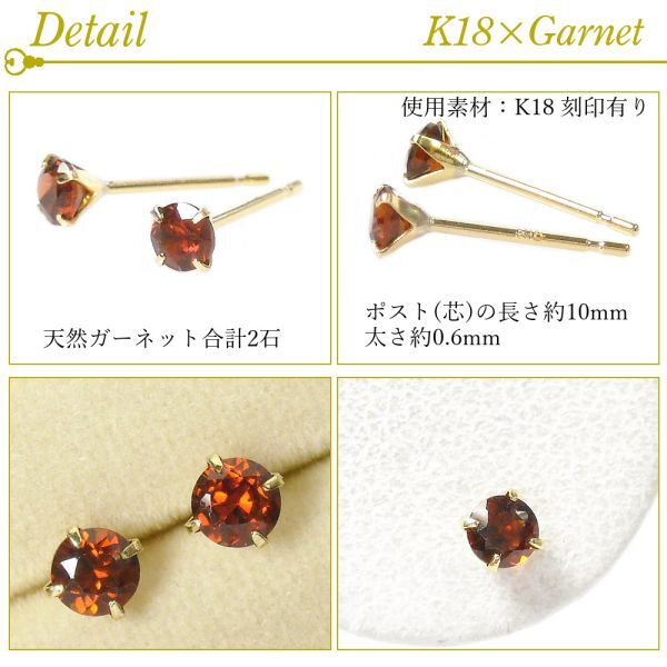 ガーネット ピアス 18k k18 天然石 1月誕生石 18金ゴールド レディース 50代 40代 60代 30代 20代 おしゃれ 小さい 小さめ 一粒 ギフト