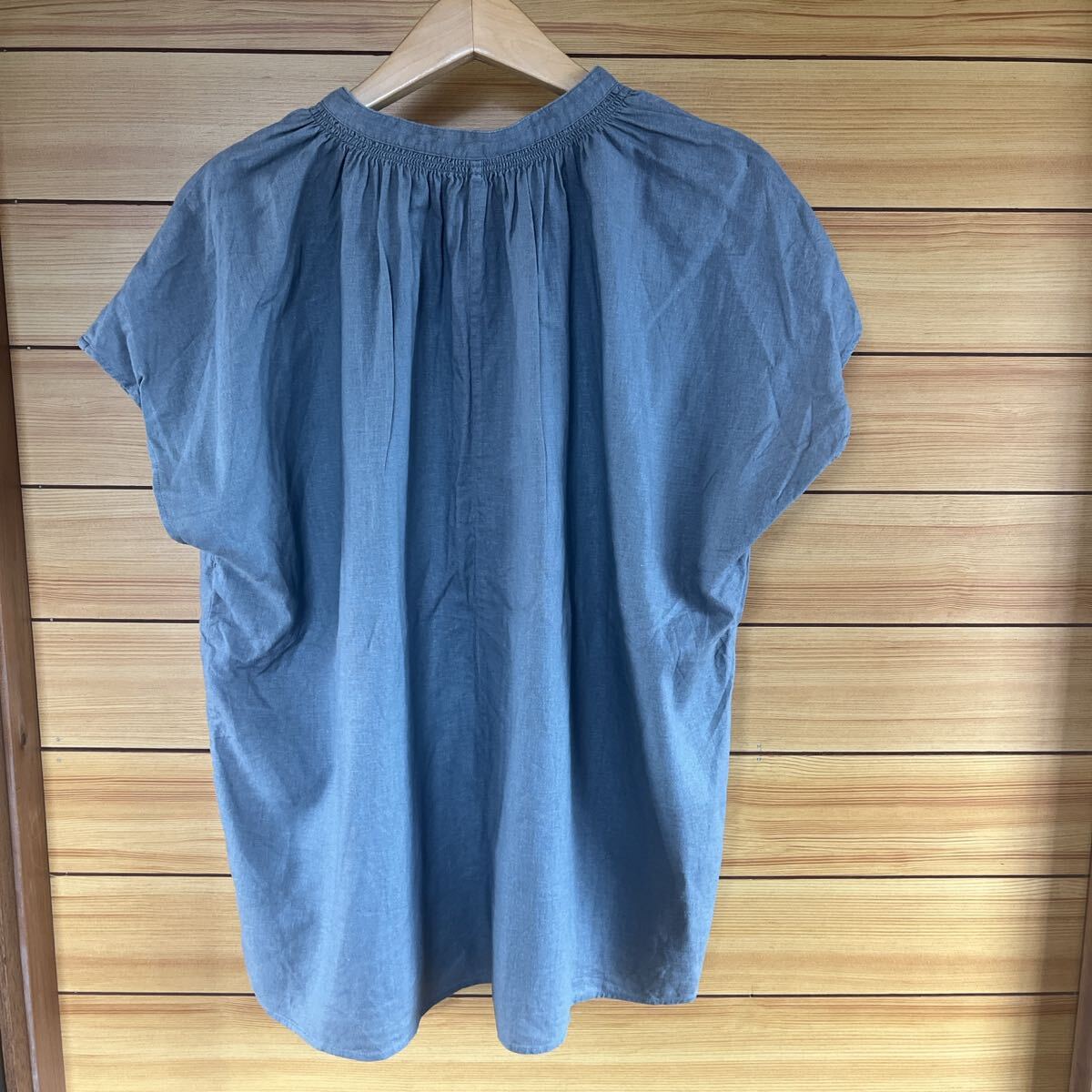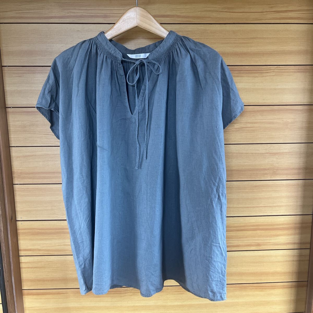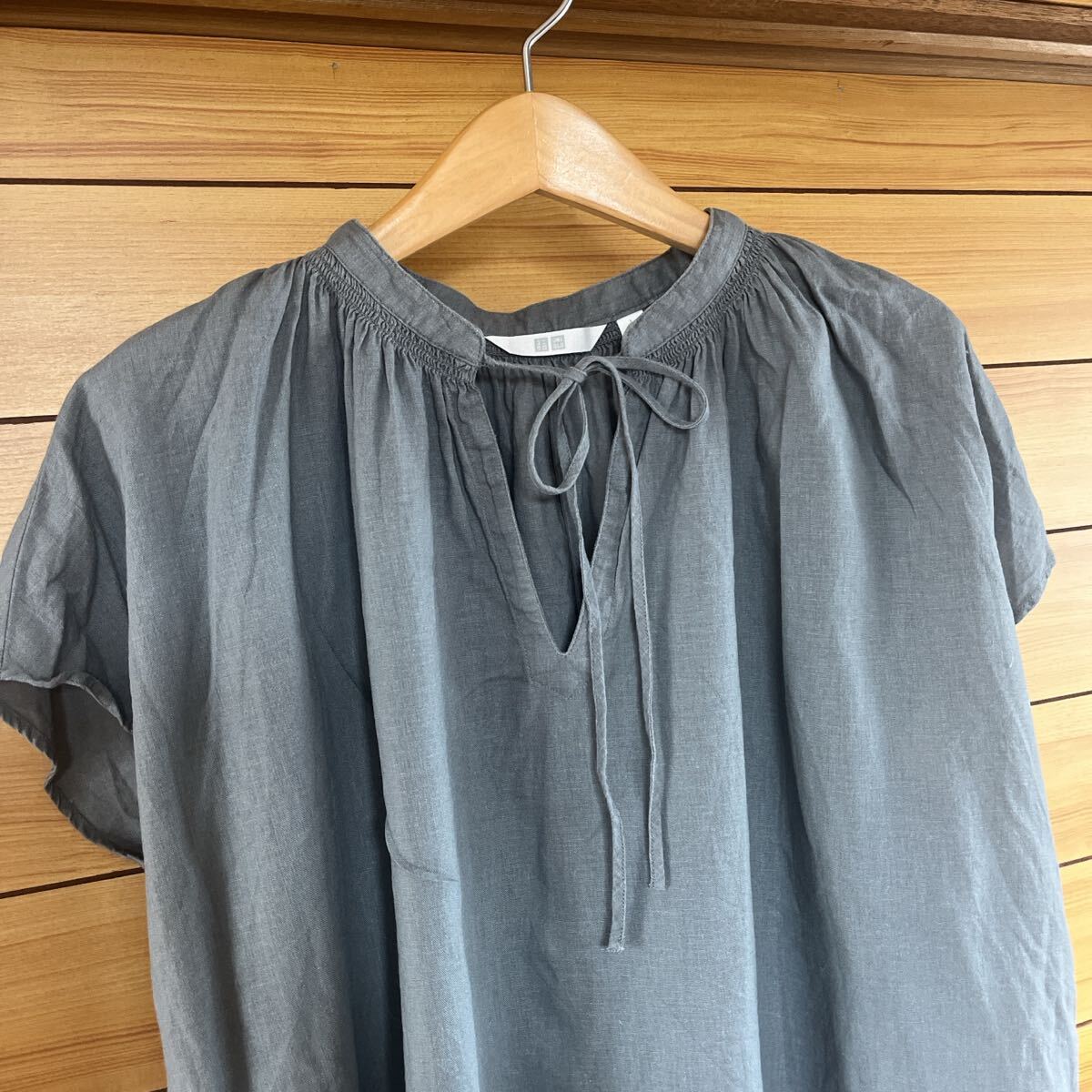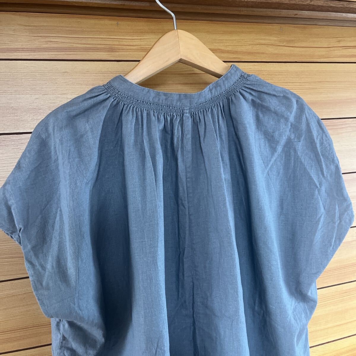 リネンブレンドギャザーブラウス