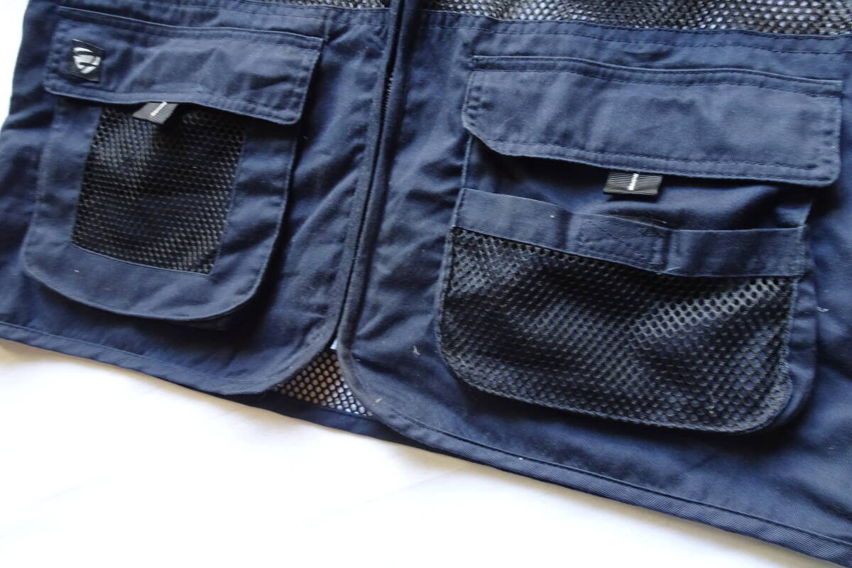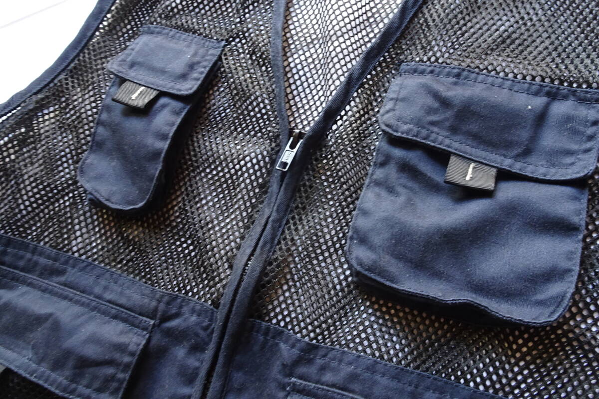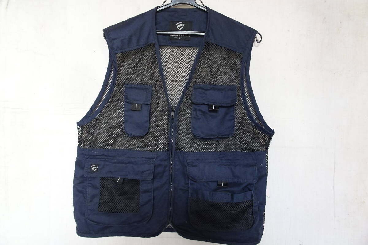 FORECAST/アウトドアベスト/メッシュ素材/Vネック/前ジップアップ/前身頃多機能ポケット/紺/ネイビー/黒/ブラック/Lサイズ(9/2R7)