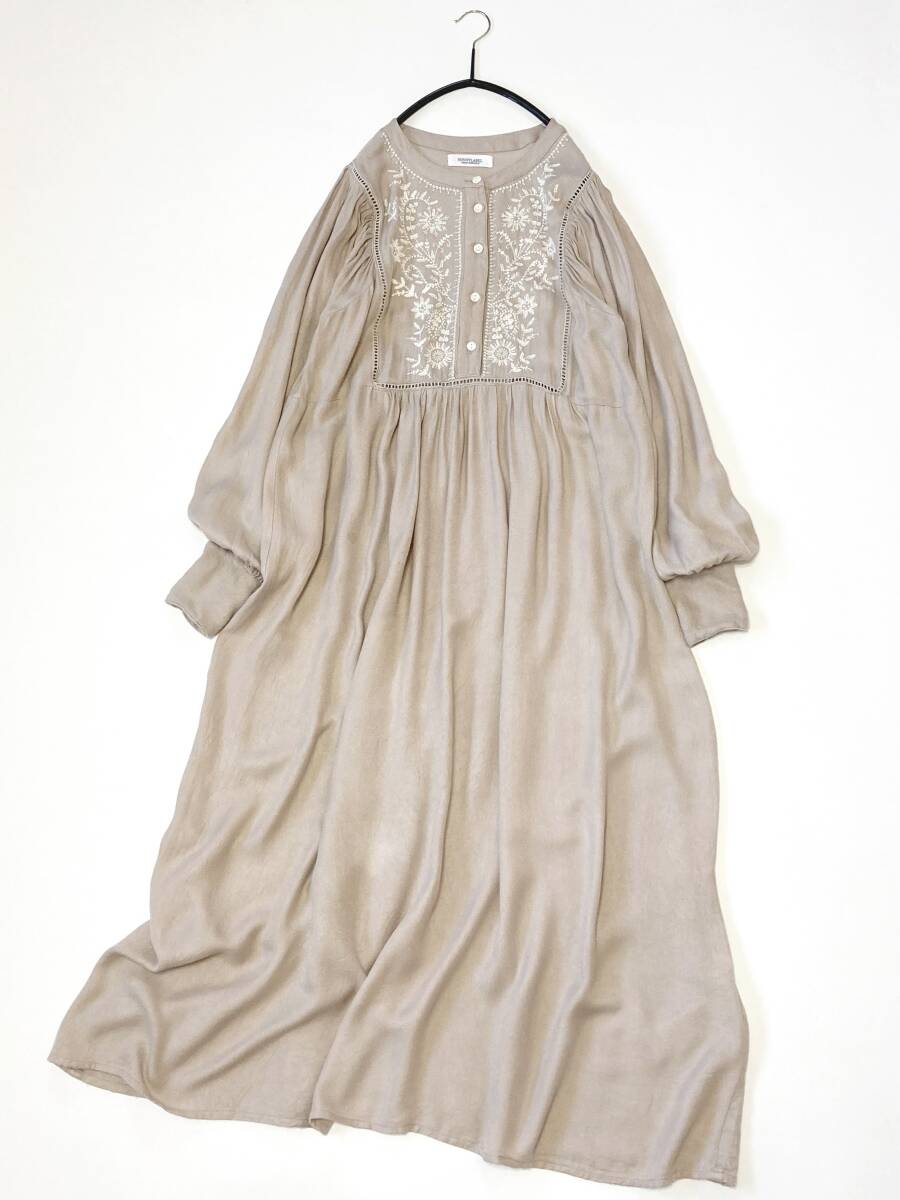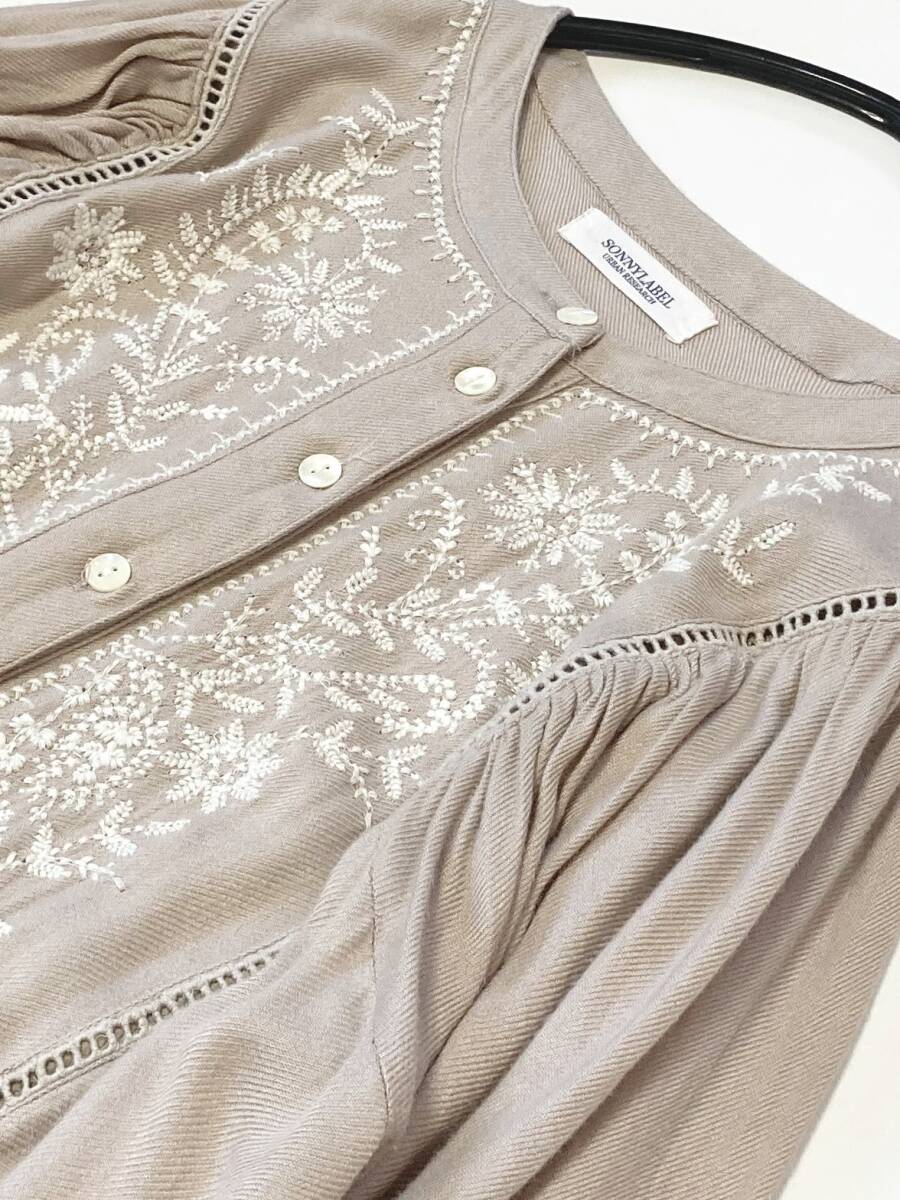 ヨーク部分の配色刺繍とボリュームのあるふわっとした袖のデザインがポイント。