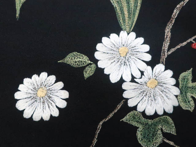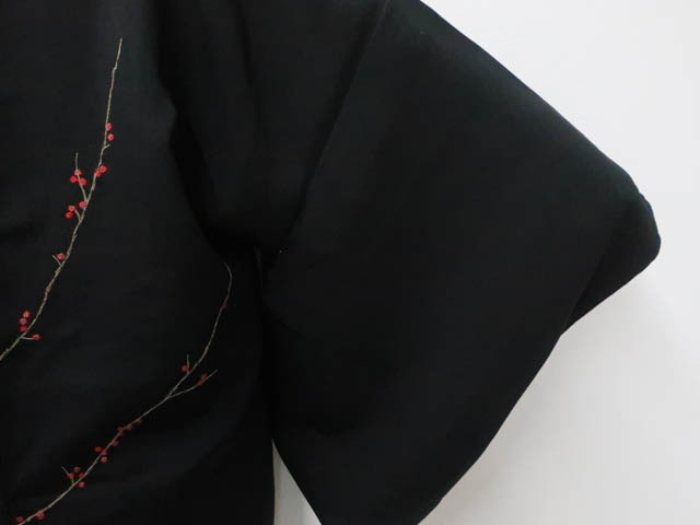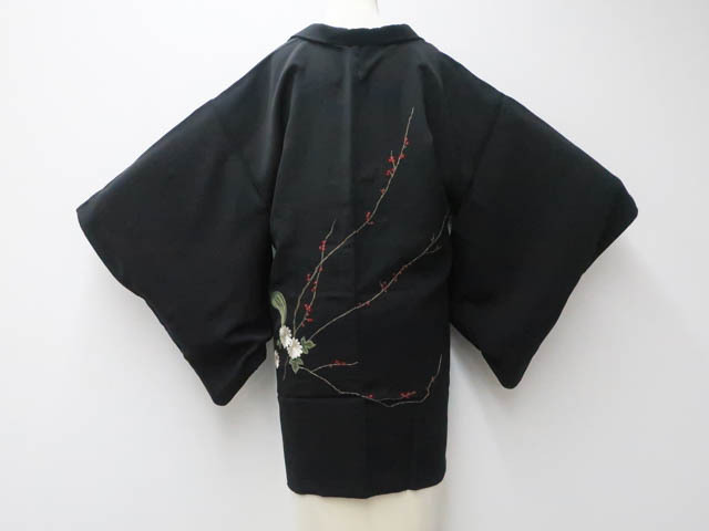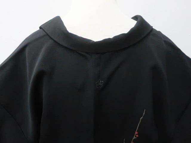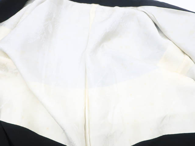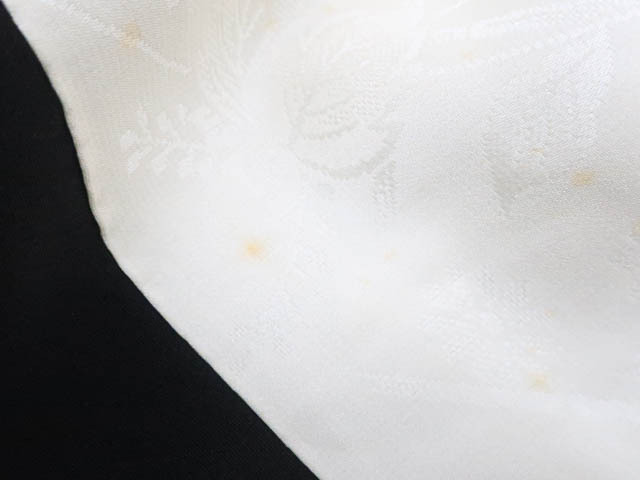 リサイクル商品のため、表所々薄汚れと裏全体にしみがございますが着用可能なお品です。 地色は 黒です。 1枚目の画像が近いお色かと思われます。 素材は正絹です。 |