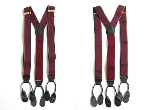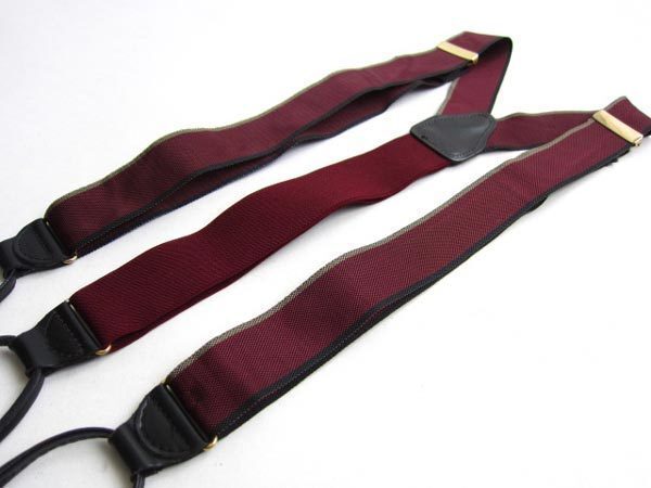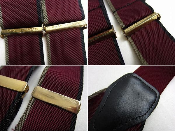 商品名 | CAS GERMANY/サイドライン柄×レザー/ボタンタブ式/Y型 サスペンダー/ワイン系/メンズ【XL】/D75 |