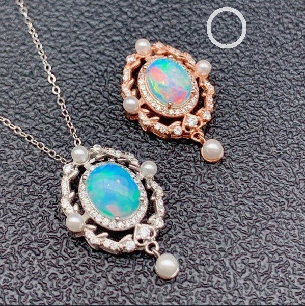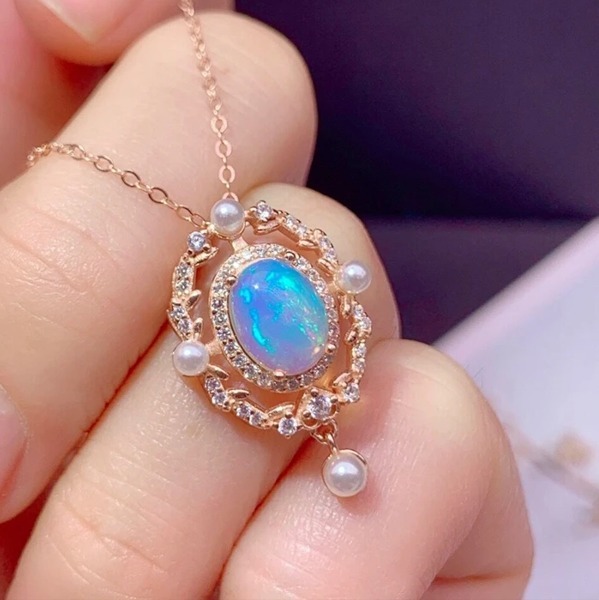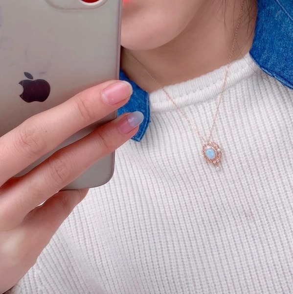 《証明書付き》天然オパールペンダント付きネックレス Rose Gold Color